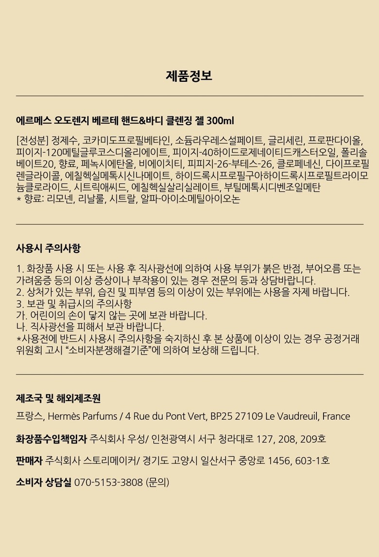 [에르메스] 오도렌지 베르테 핸드&바디 클렌징 젤 300ML (쇼핑백 증정)