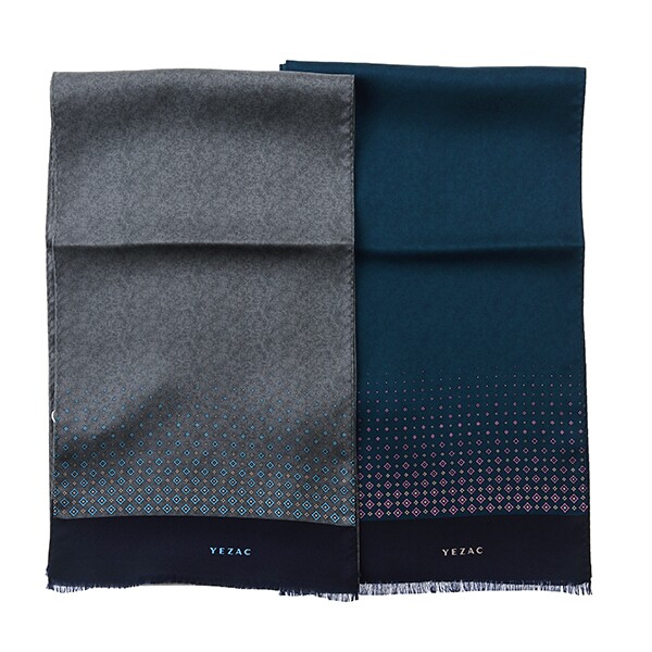 멜란지 바닥에 그라데이션 모티브와 머플러 가운데?YZ 로고가포안트인?단면 실크 넥타이