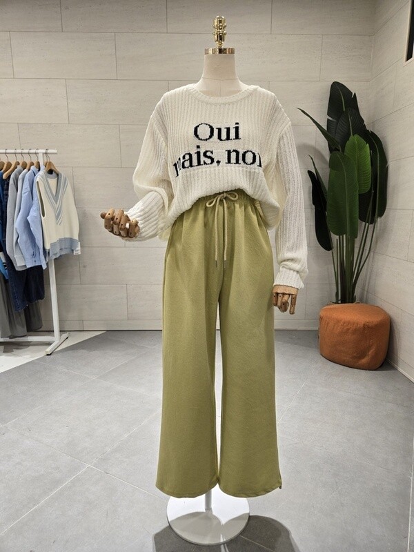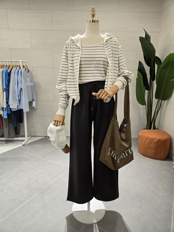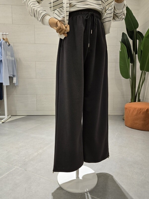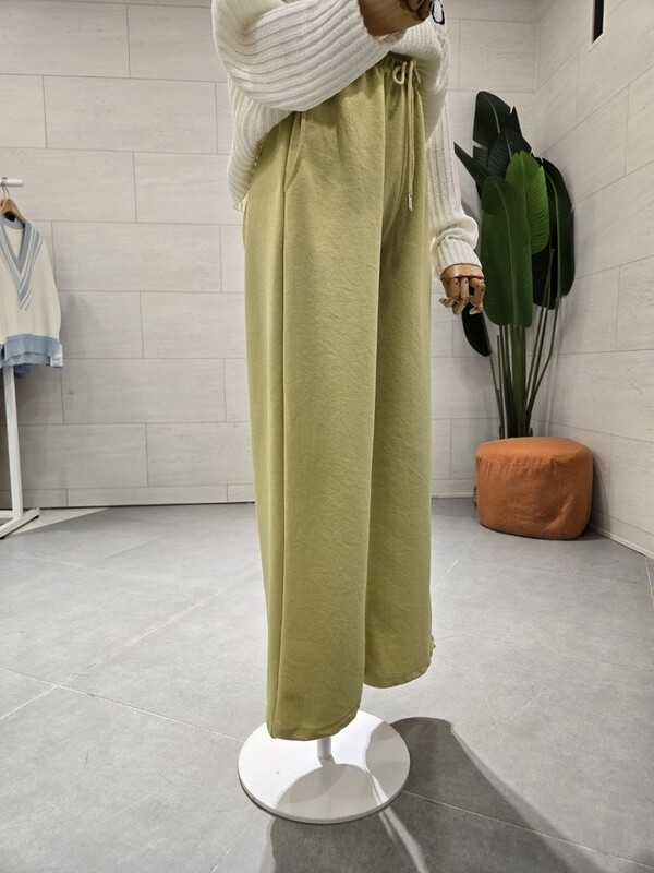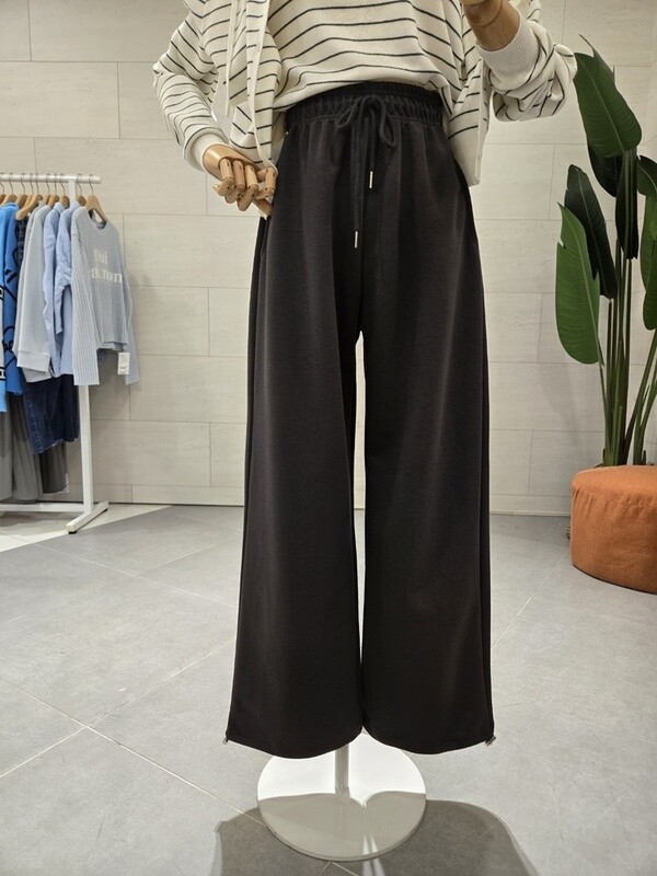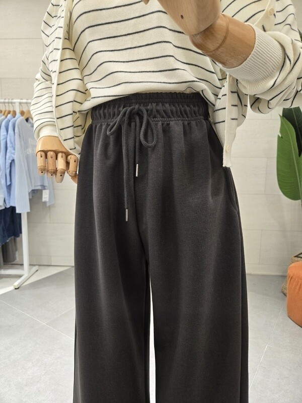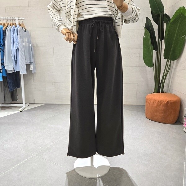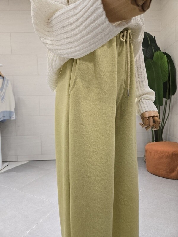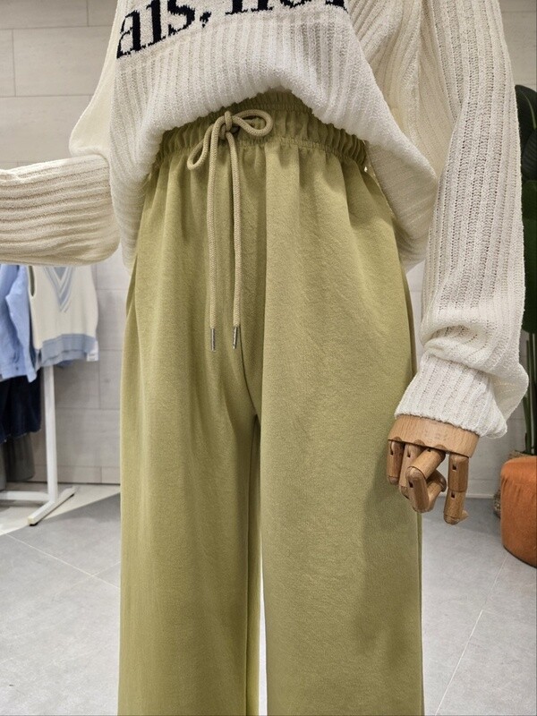 C24B7FPT014_밑단 스트링 컬러 와이드팬츠