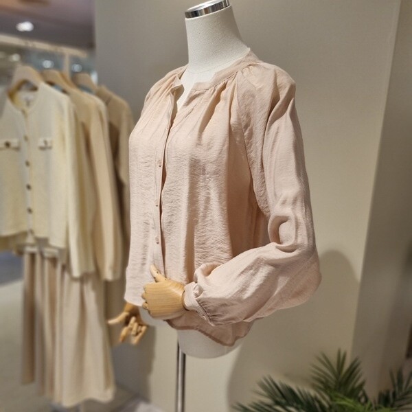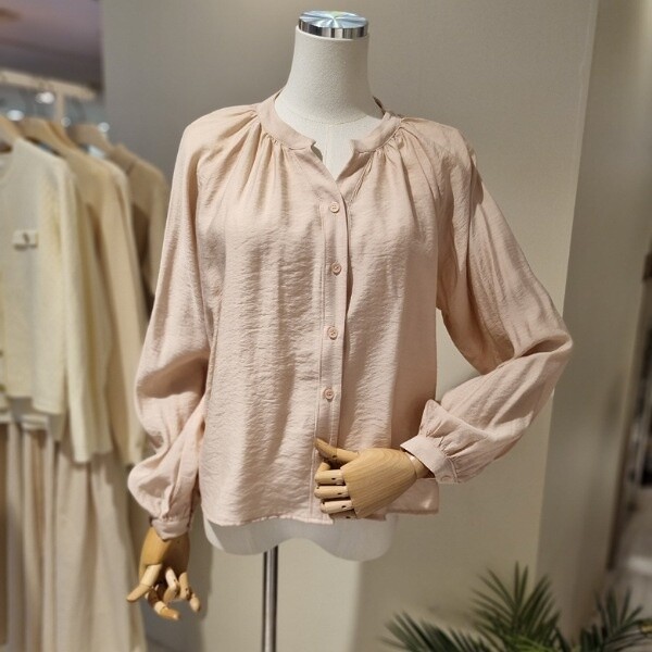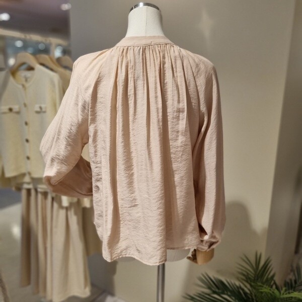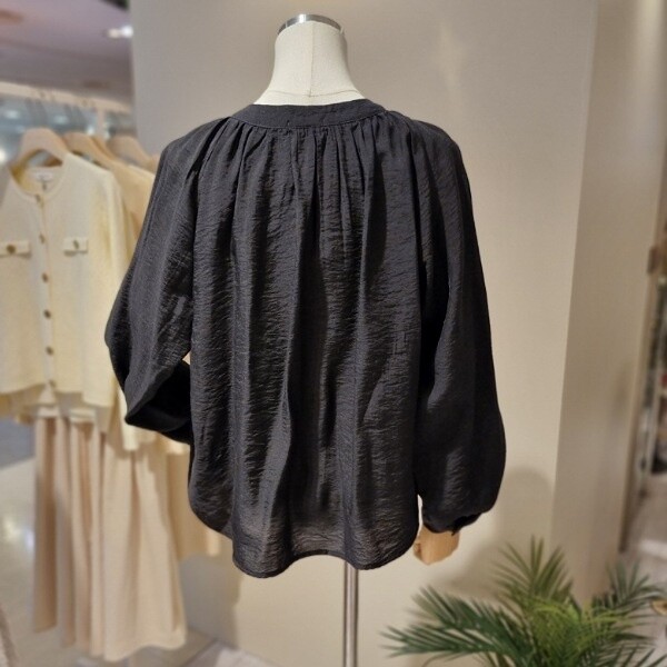 목선 셔링디자인으로 여유있는 핏감/ 레이온 소재의 부드러움/ 오픈형 라운드넥