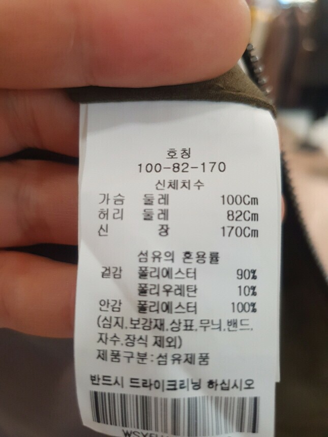 안감 : 폴리에스터 100%