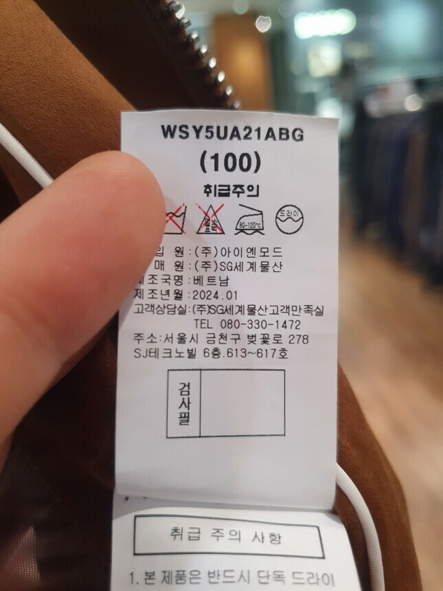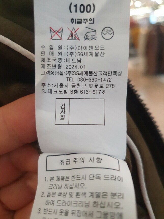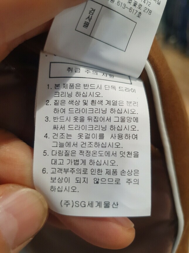 6. 세탁방법 및 취급시 주의사항 반드시 드라이크리닝 하세요.