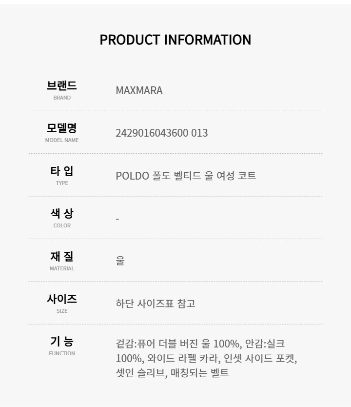 막스마라 코트 2429016043600 013 폴도 벨티드 울 여성코트 당일발송