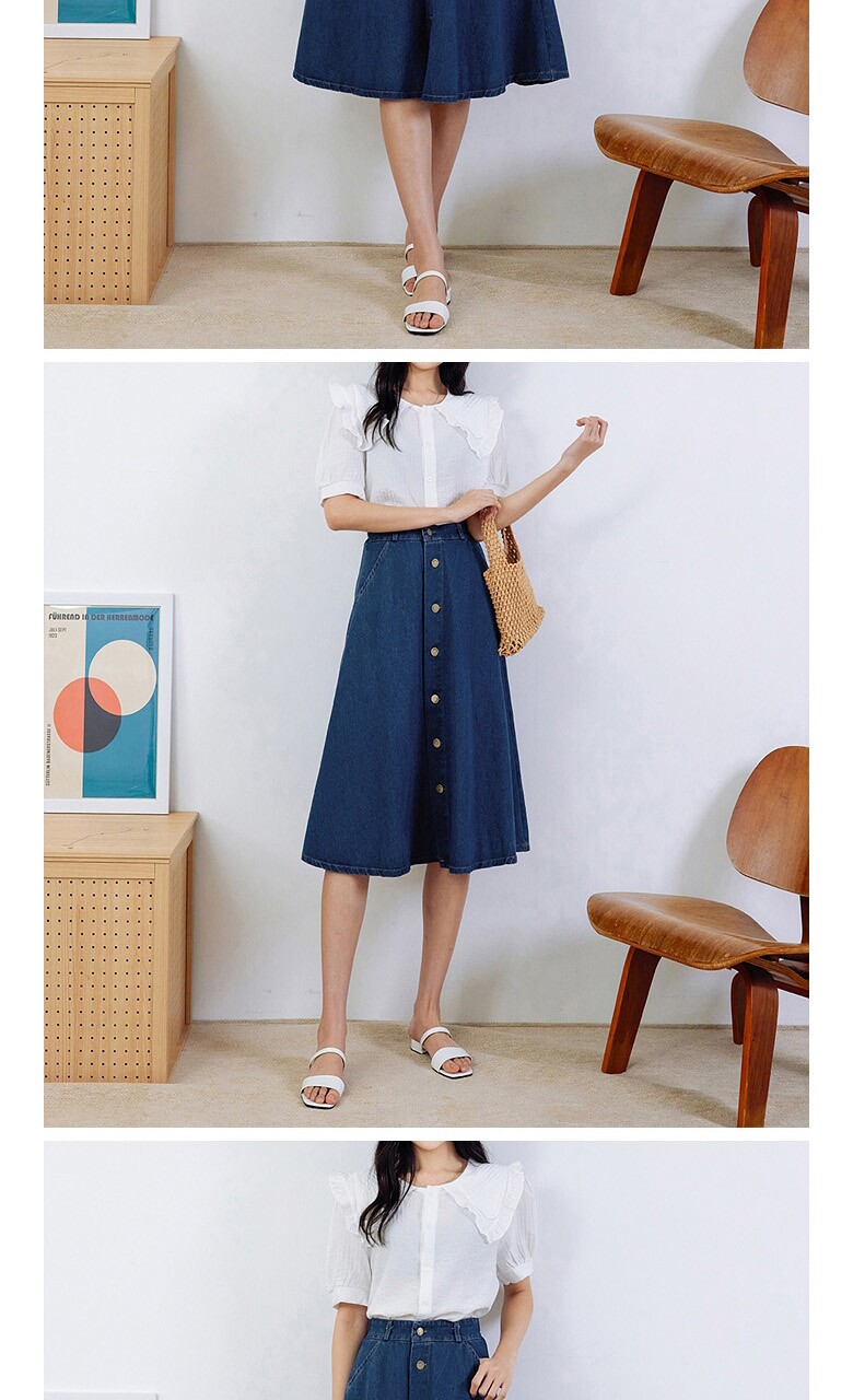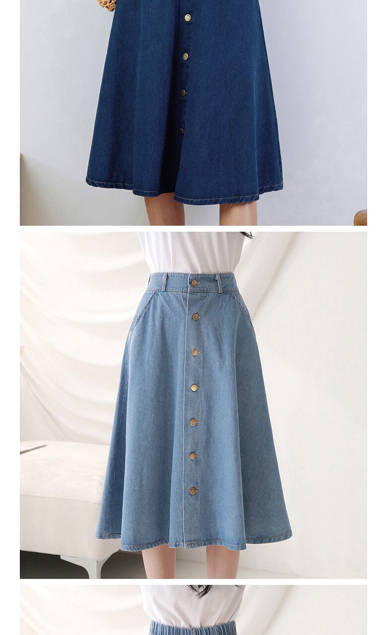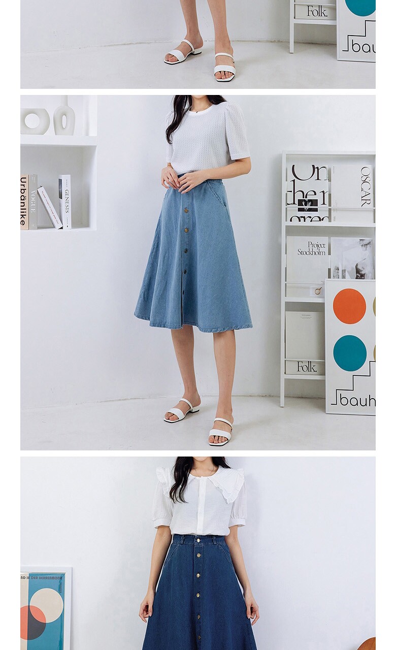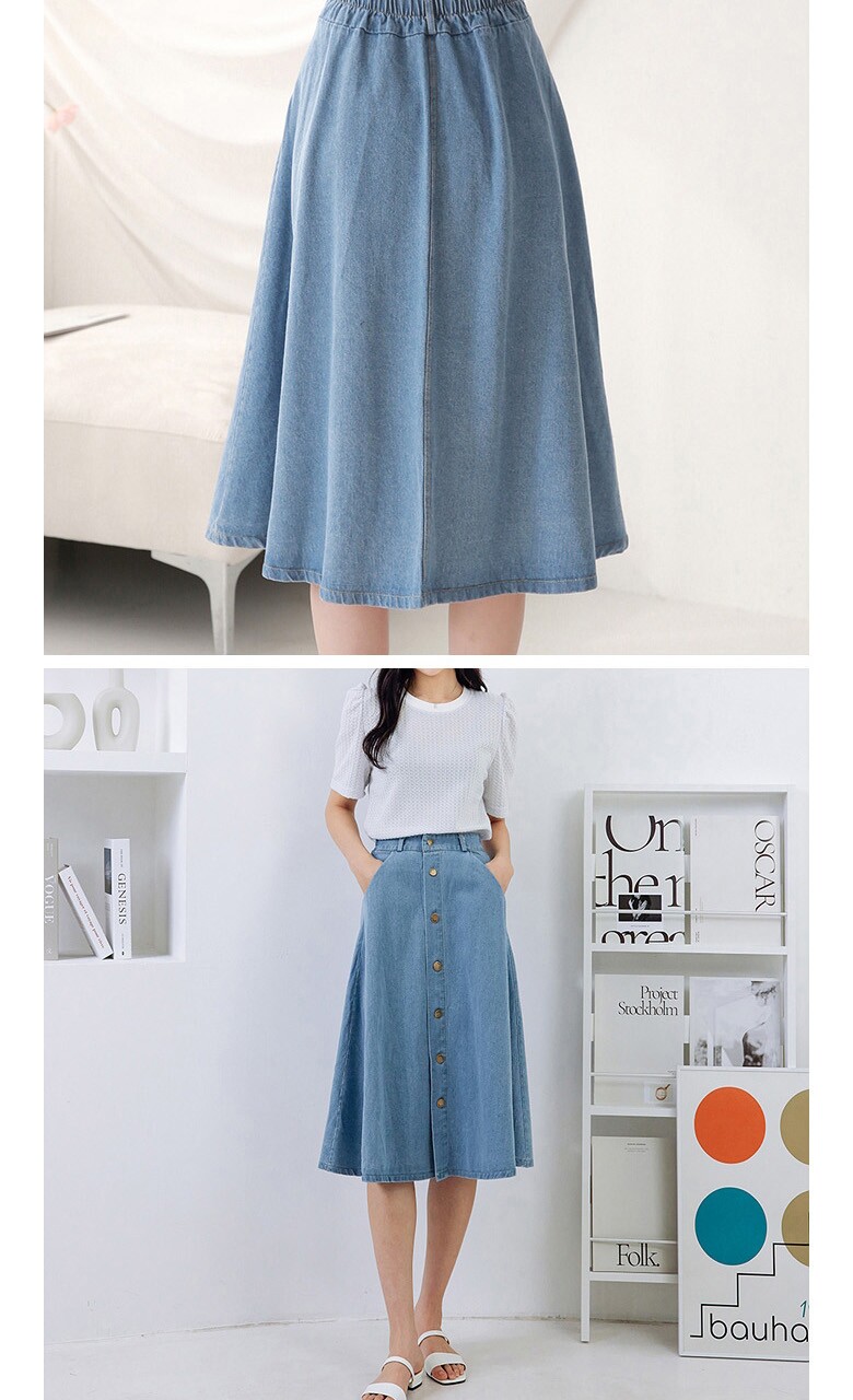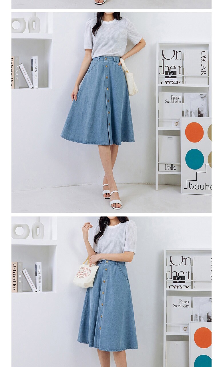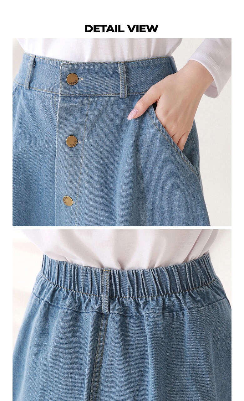 버튼 클로징 데님 플레어 스커트_O2503SK014A
