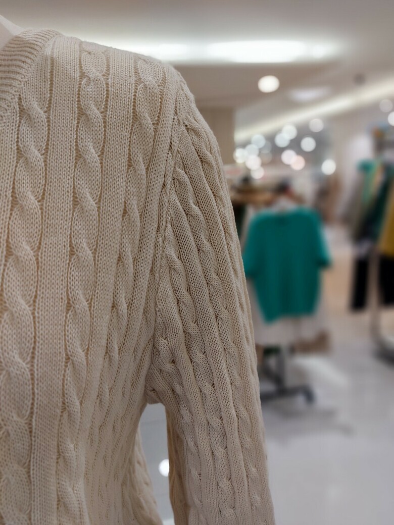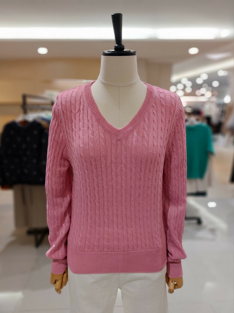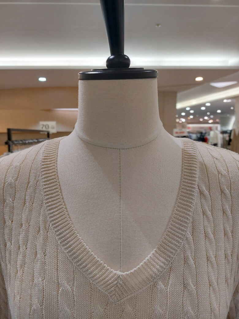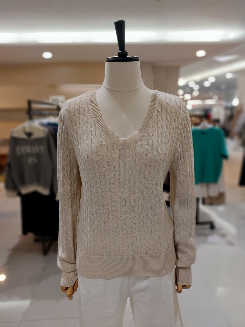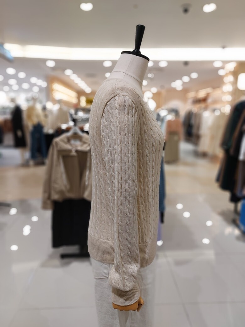 오프리미츠 깊은V넥퍼프소매꽈배기니트 B24KT2310