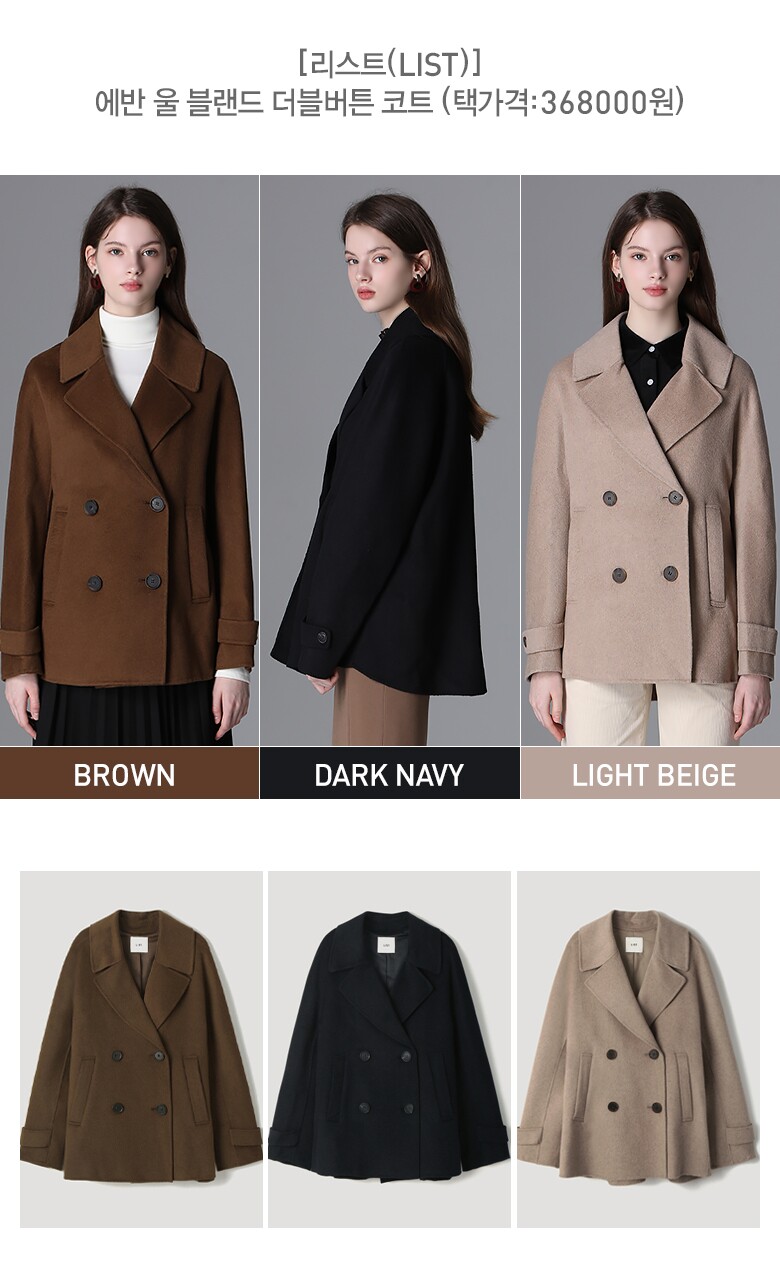 [리스트(LIST)] 에반 울 블랜드 더블버튼 코트 (택가격:368000원)