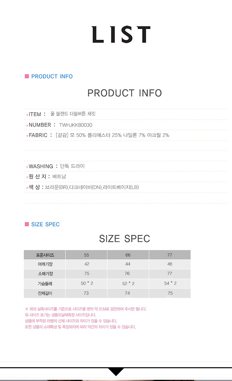 2. 색상 | 브라운(BR), 다크네이비(DN), 라이트베이지(LB) |