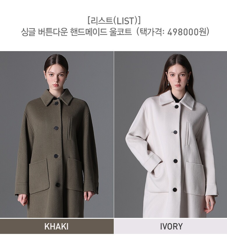 [리스트(LIST)] 싱글 버튼다운 핸드메이드 울코트 (택가격: 498000원)