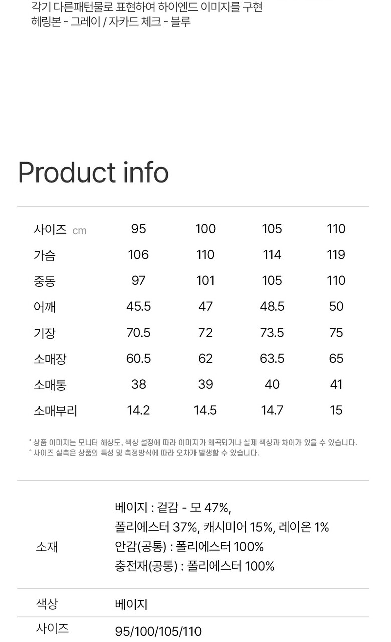 6. 세탁방법 및 취급시 주의사항 상세페이지 참조