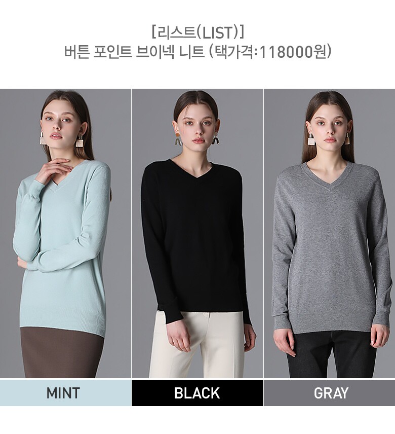 [리스트(LIST)] 버튼 포인트 브이넥 니트 (택가격:118000원)