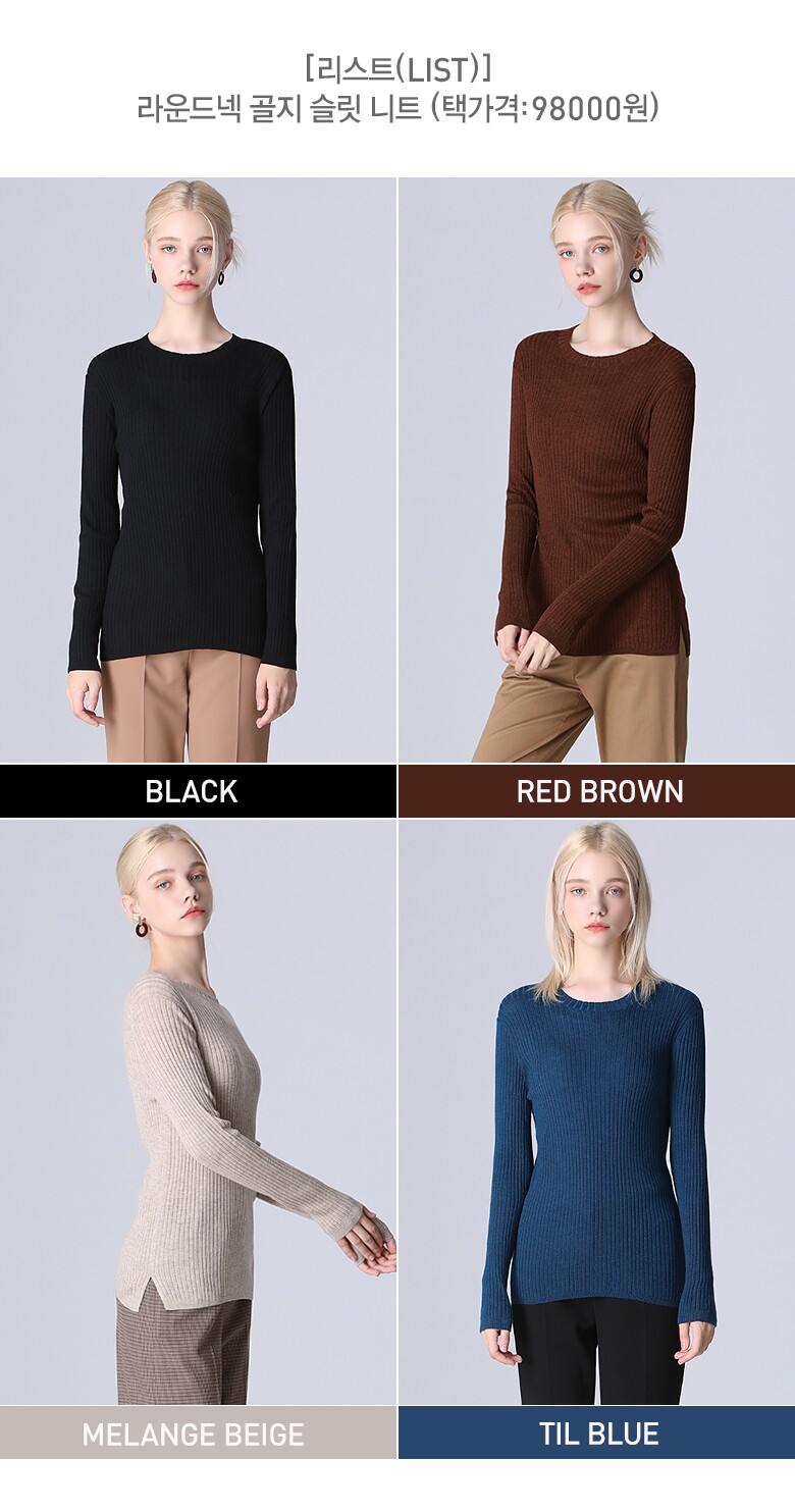 [리스트(LIST)] 라운드넥 골지 슬릿 니트 (택가격:98000원)