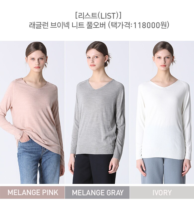 [리스트(LIST)] 래글런 브이넥 니트 풀오버 (택가격:118000원)