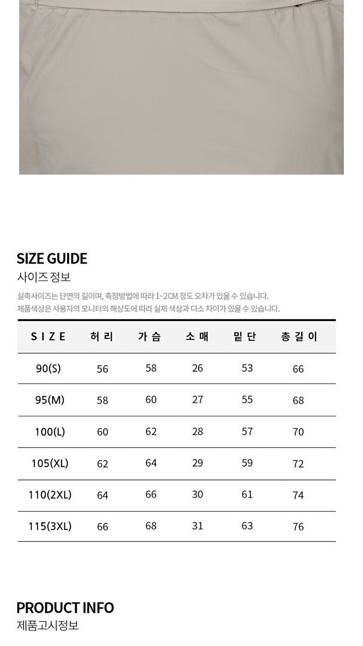 1. 제품 소재 (섬유의 조성 또는 혼용률을 백분율로 표시, 기능성인 경우 성적서 또는 허가서) 겉감 : 나일론 91% 폴리우레탄 9%, 안감 : 폴리에스터 100%
