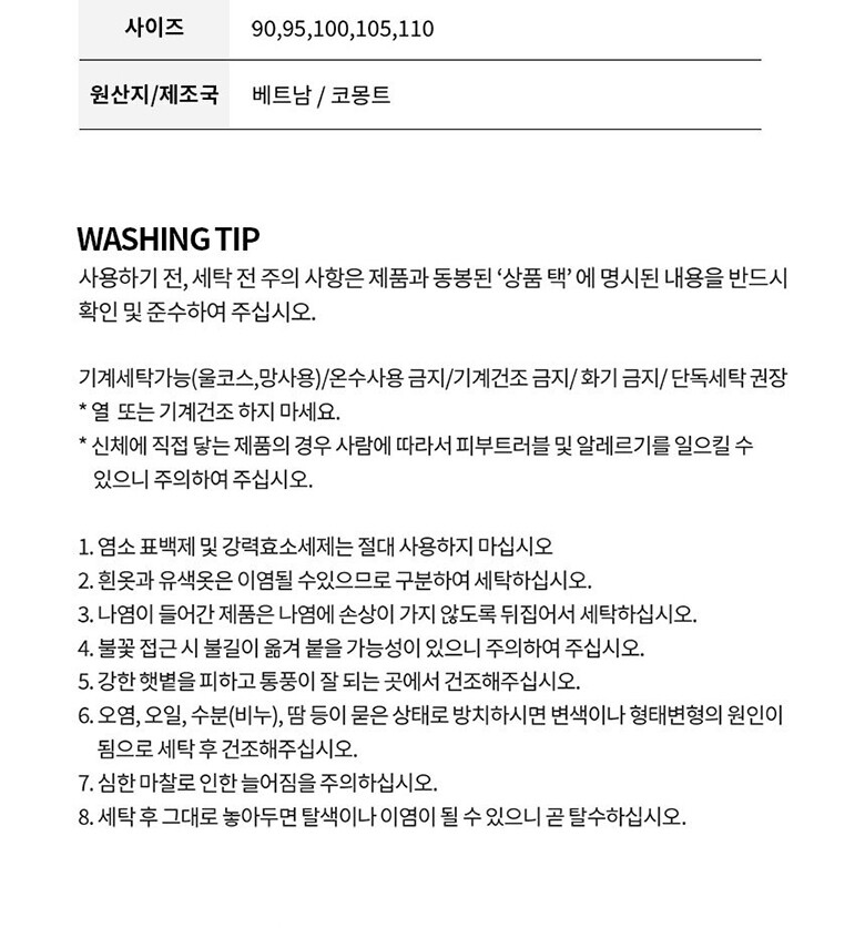 6. 세탁방법 및 취급시 주의사항 | 상세페이지 참조 |