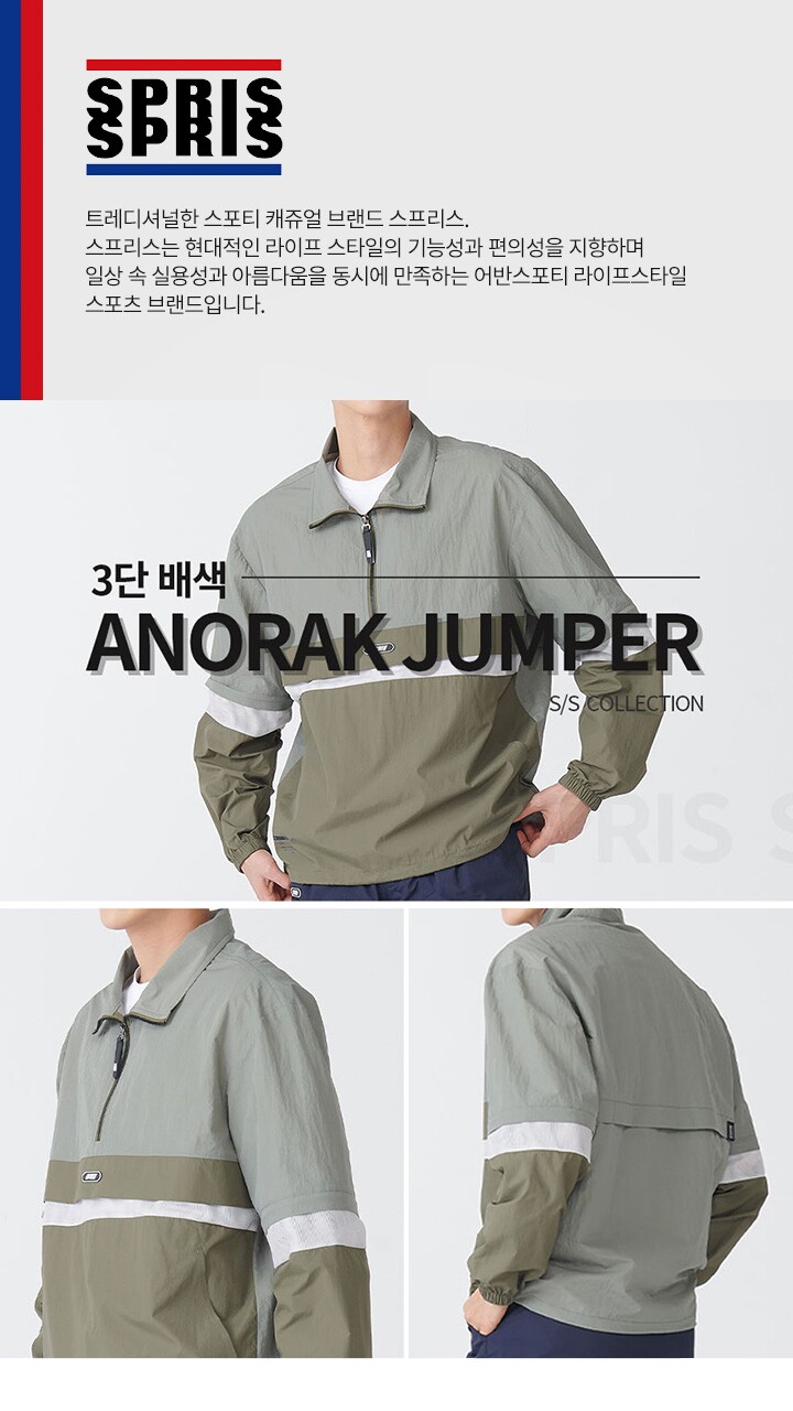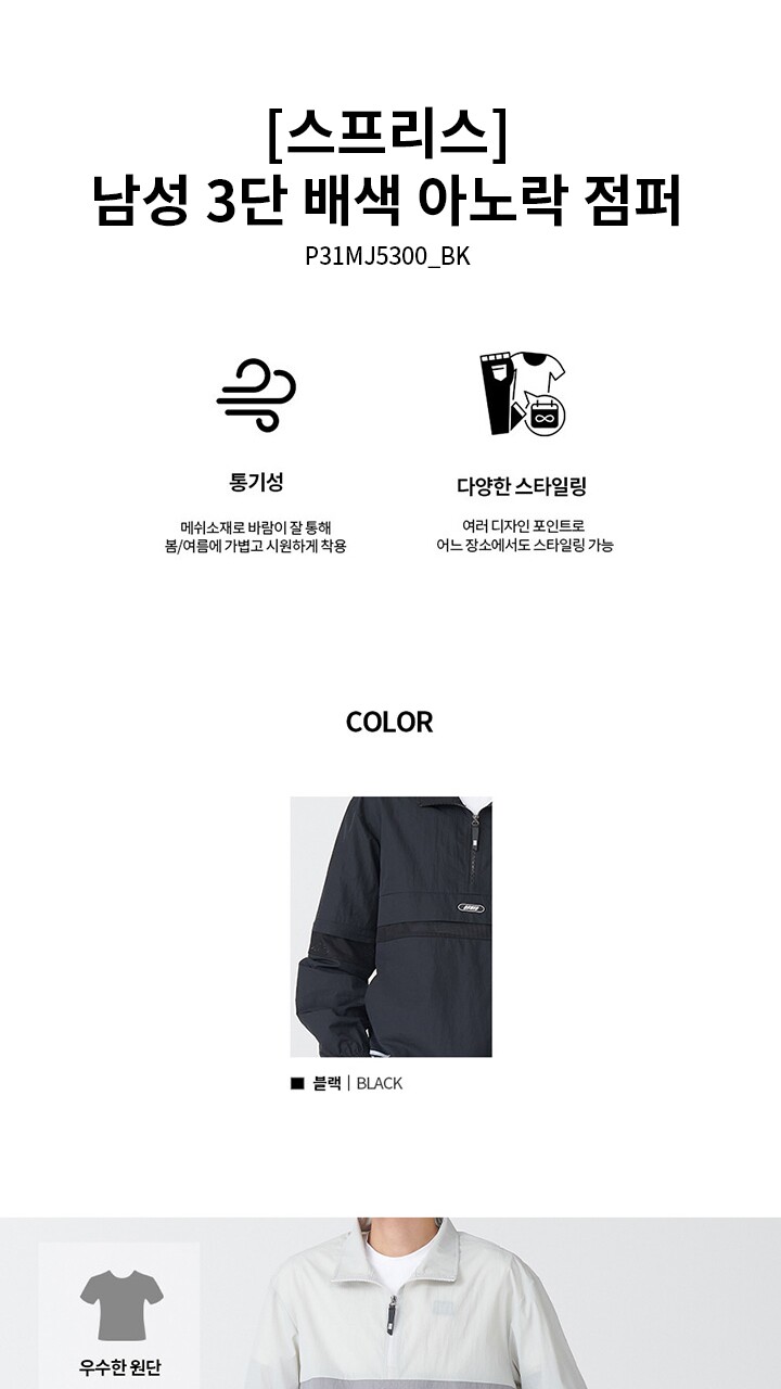 스프리스 남성 3단 배색 아노락 점퍼 블랙