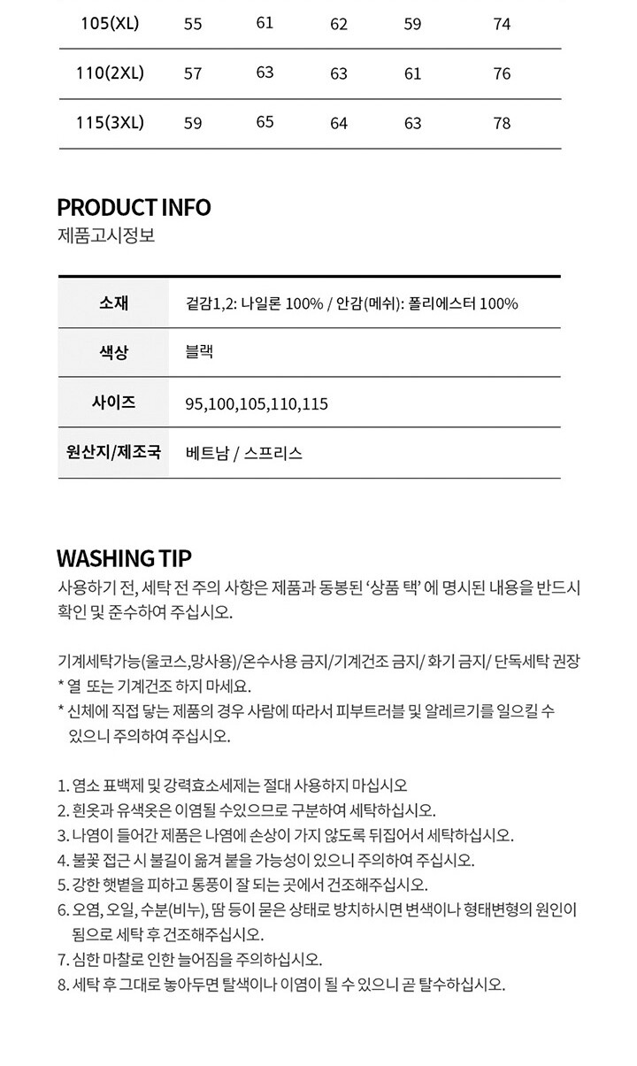 6. 세탁방법 및 취급시 주의사항 | 상세페이지 참조 |