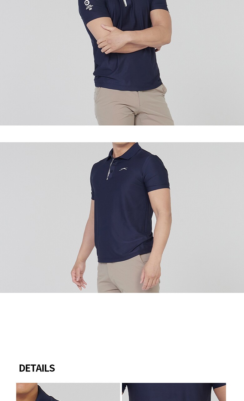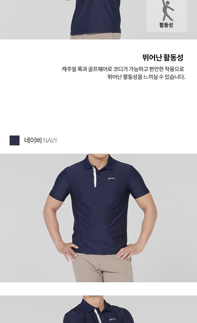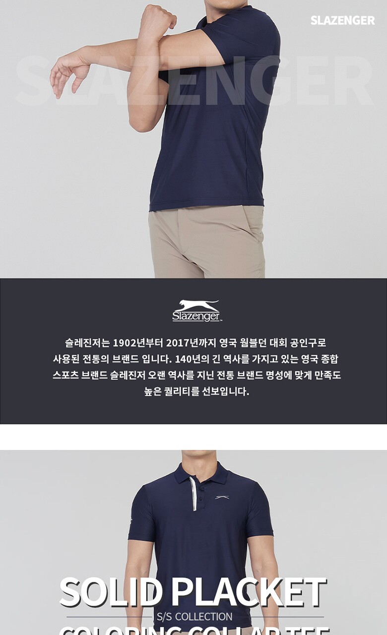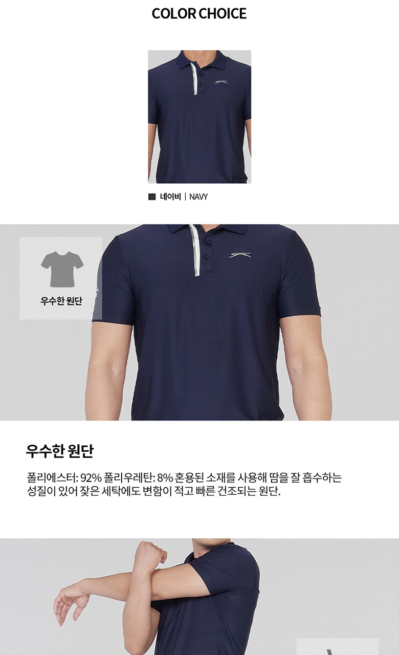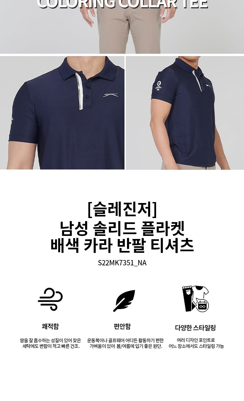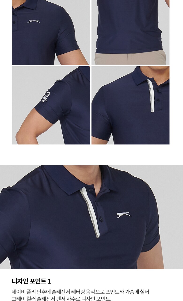 슬레진저 남성 솔리드 플라켓 배색 카라 반팔 티셔츠 네이비