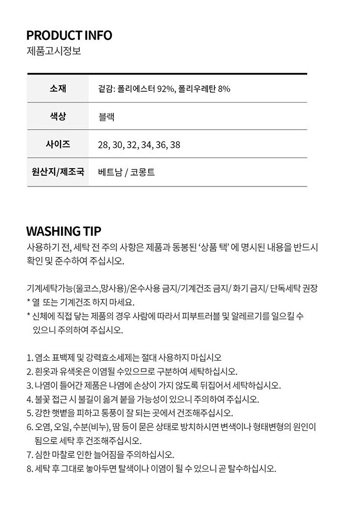 6. 세탁방법 및 취급시 주의사항 상세페이지 참조