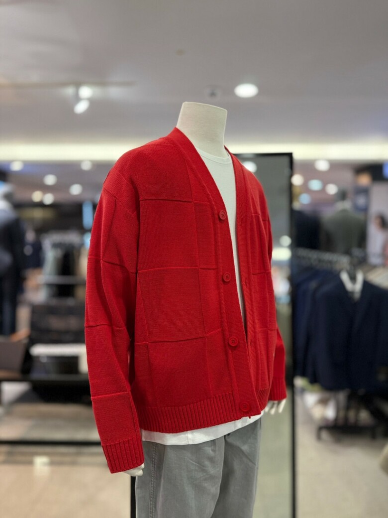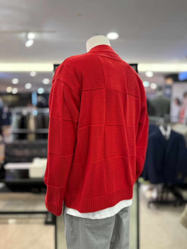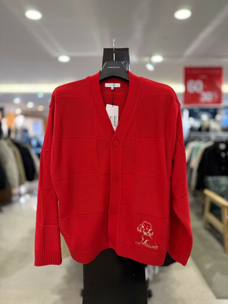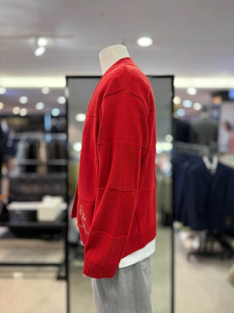 리버클래시 레드 블럭패턴 자수 포인트 가디건 LLS51503