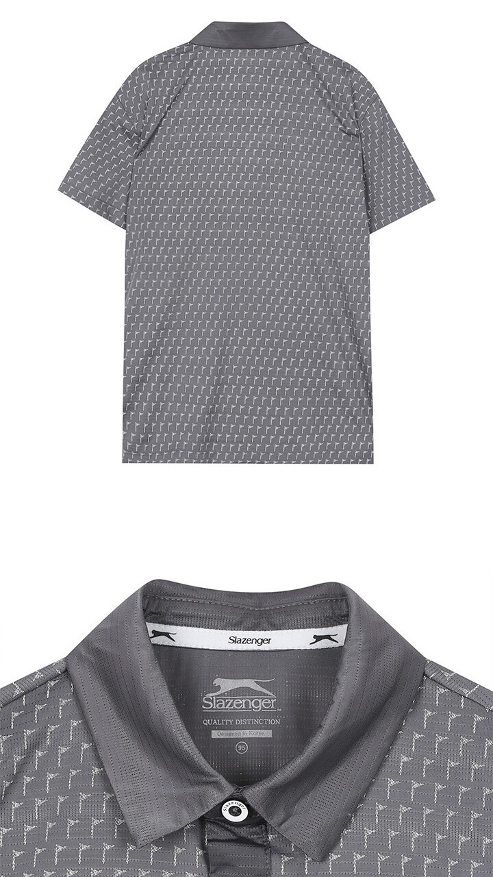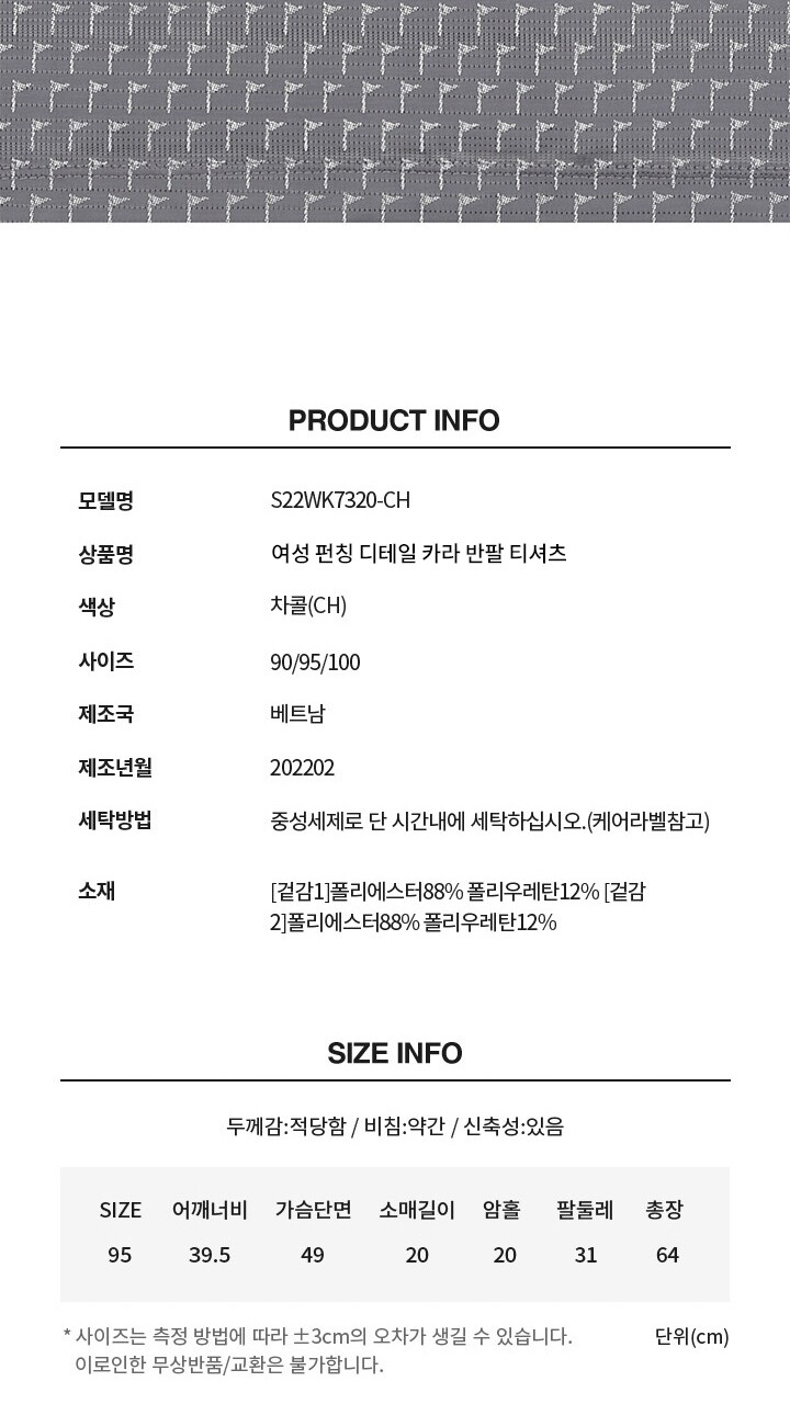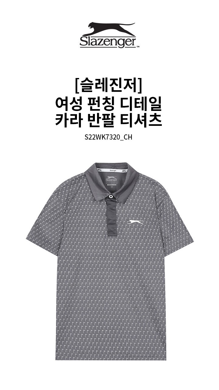 슬레진저 여성 펀칭 디테일 카라 반팔 티셔츠 차콜