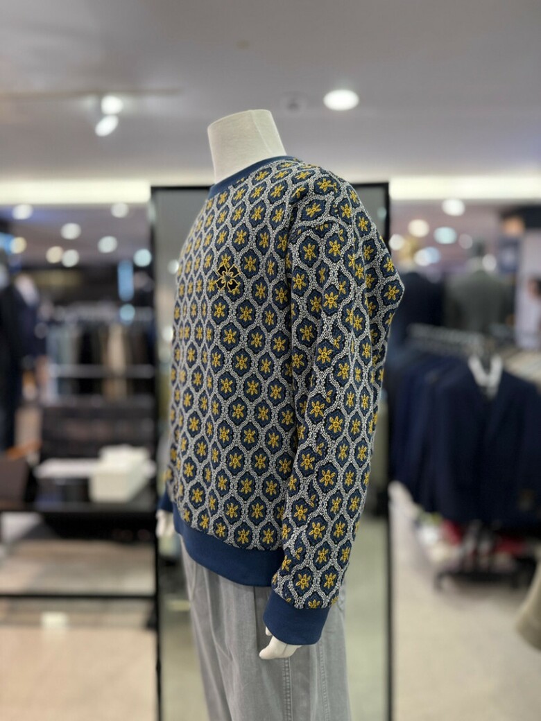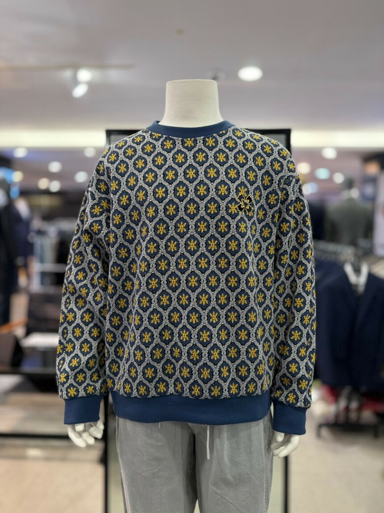 리버클래시 그레이 오버핏 플라워 자카드 맨투맨 LLS41502