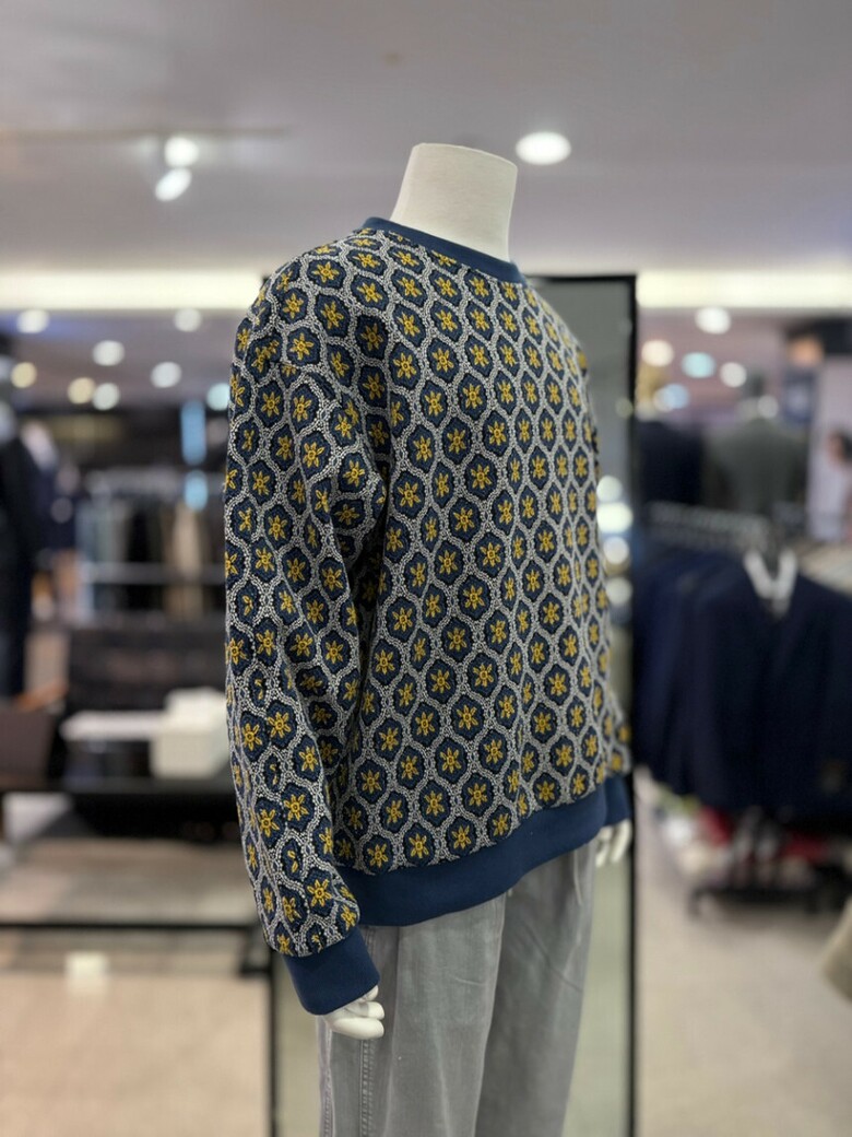 리버클래시 그레이 오버핏 플라워 자카드 맨투맨 LLS41502