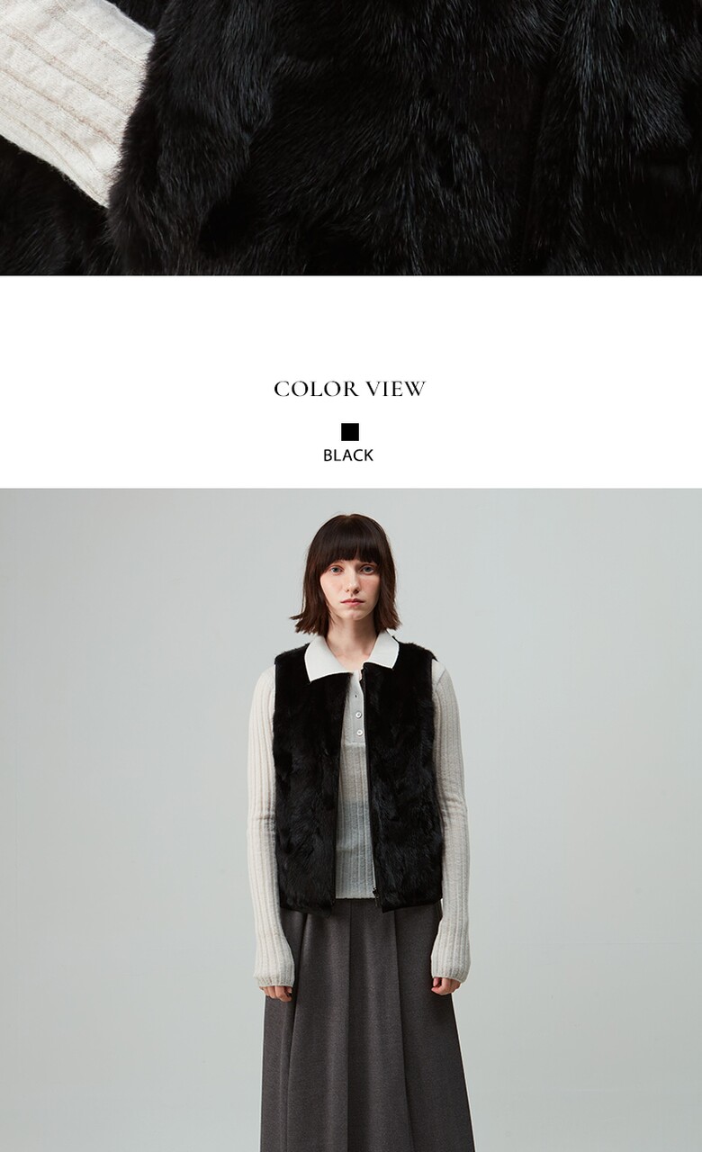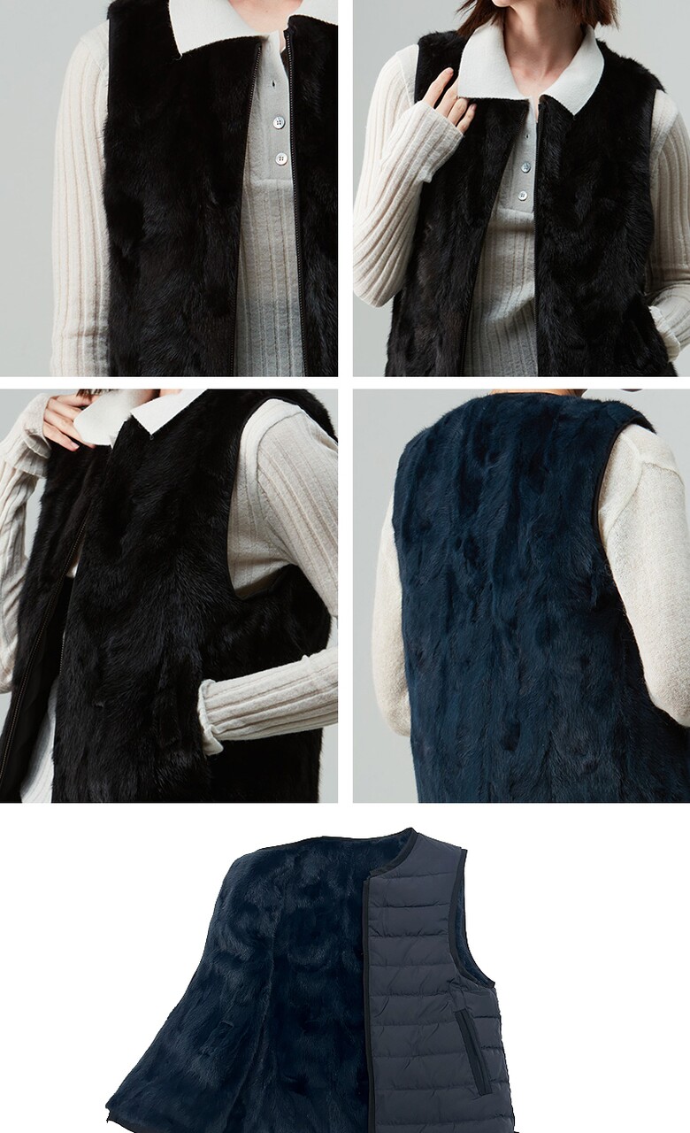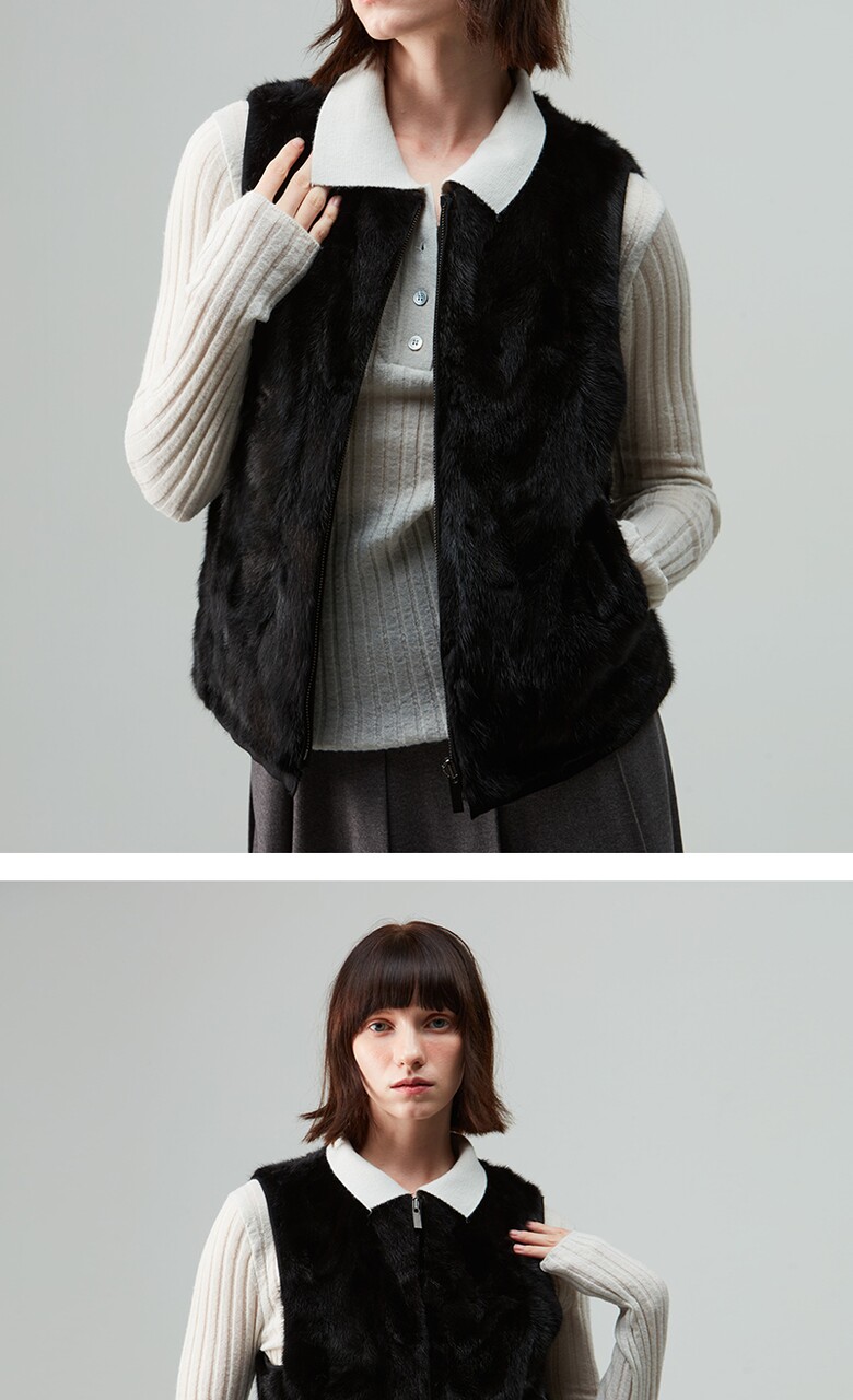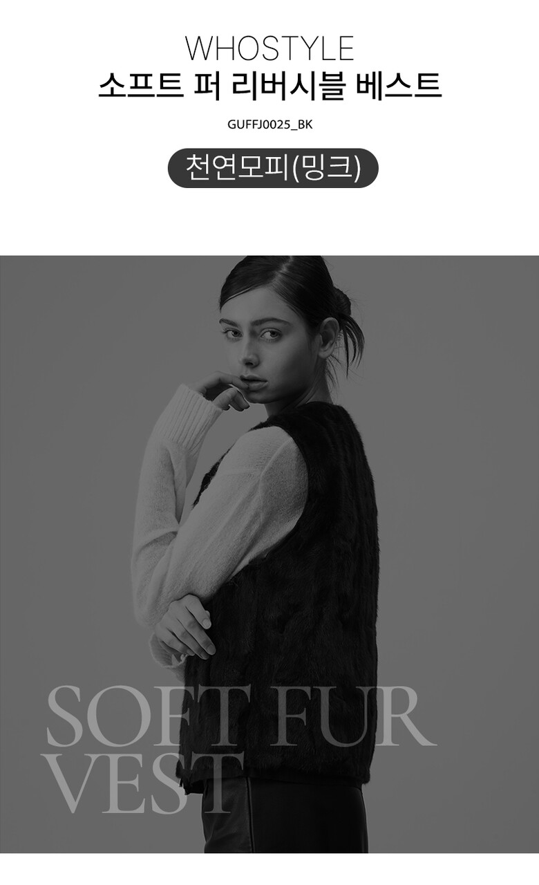 후스타일 여성 천연모피 소프트 퍼 리버시블 베스트 블랙