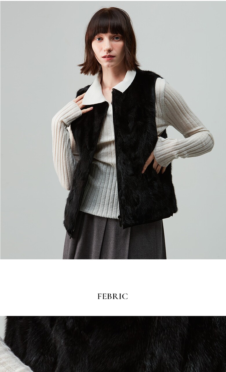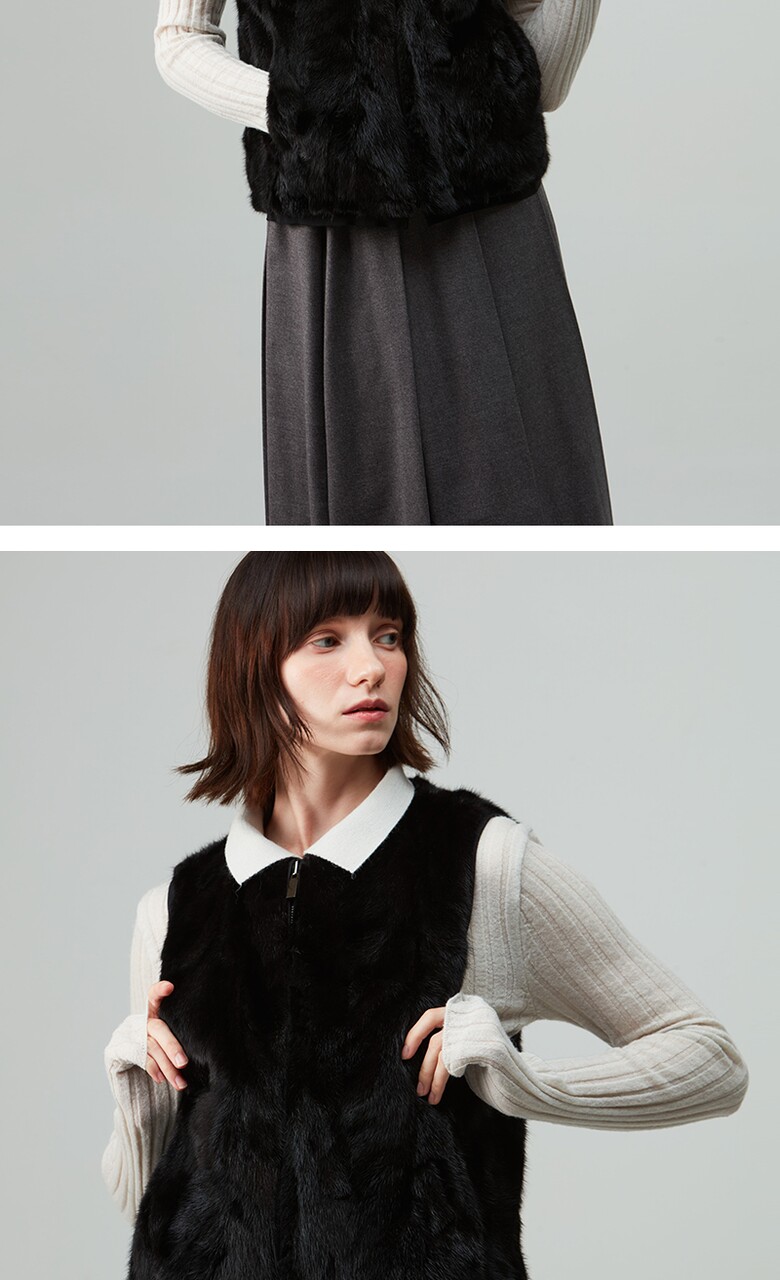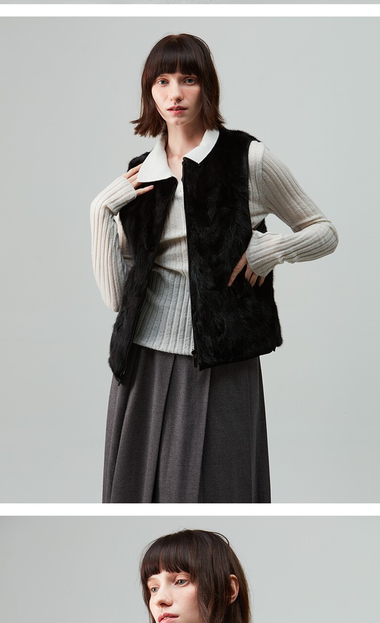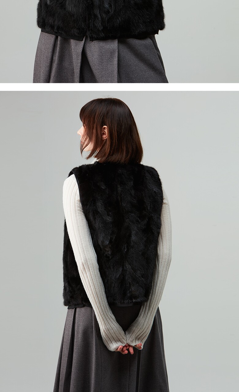 후스타일 여성 천연모피 소프트 퍼 리버시블 베스트 블랙