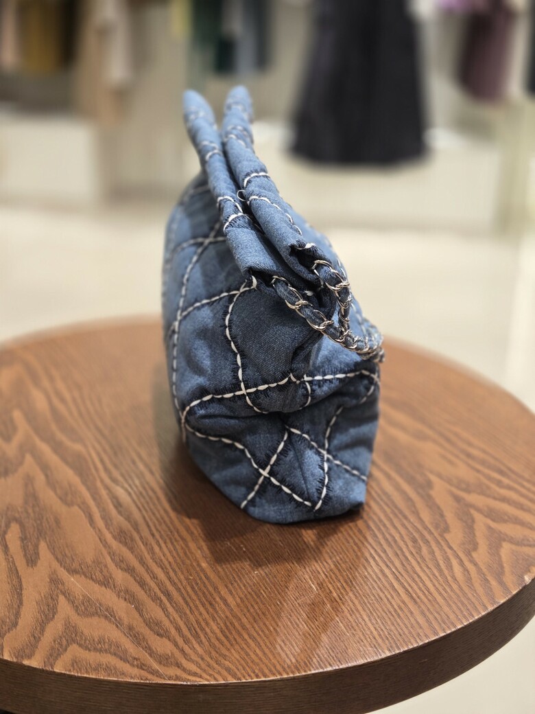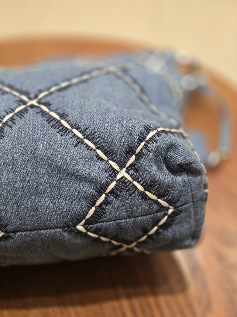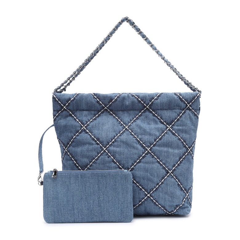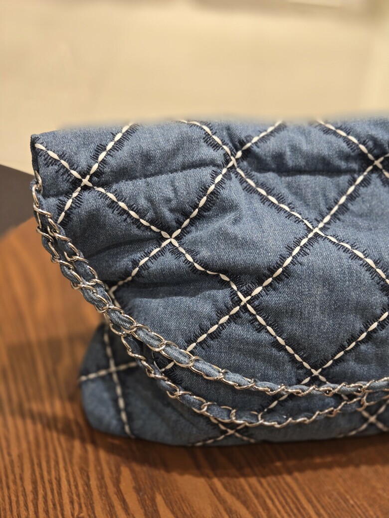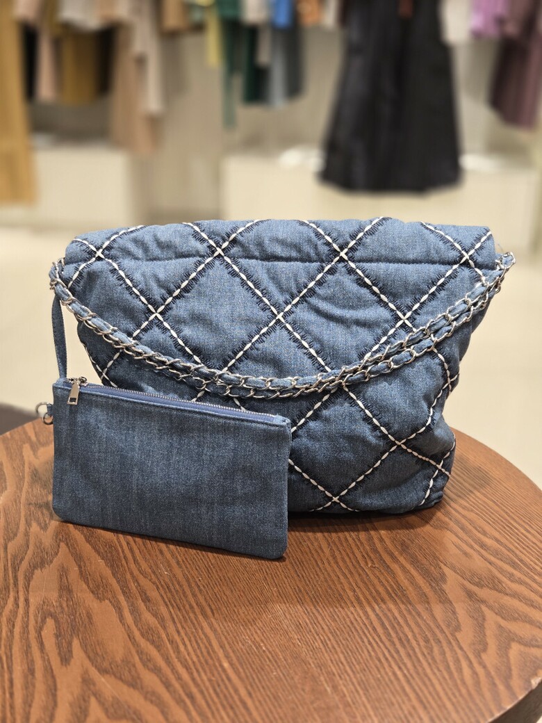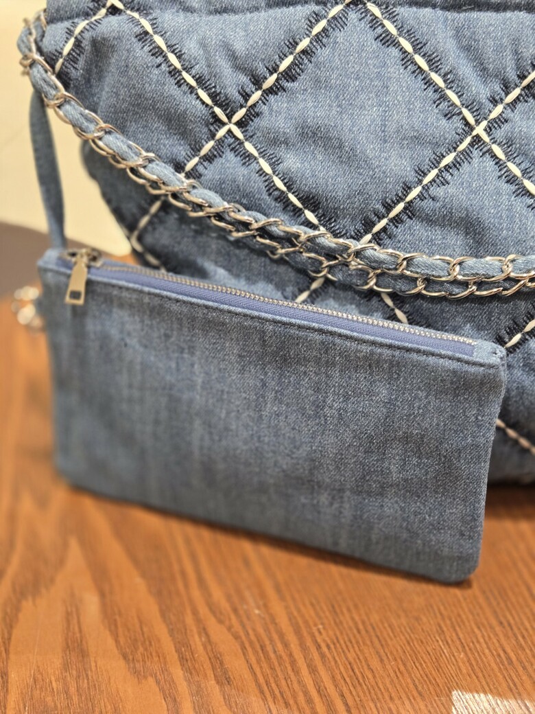 체인으로 되어있는 데님소재 가벼운 숄더백입니다.