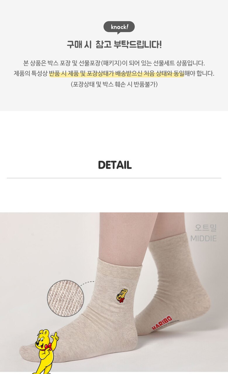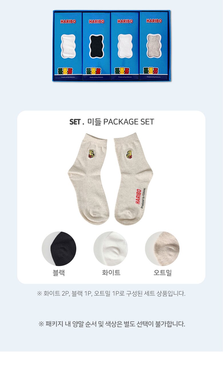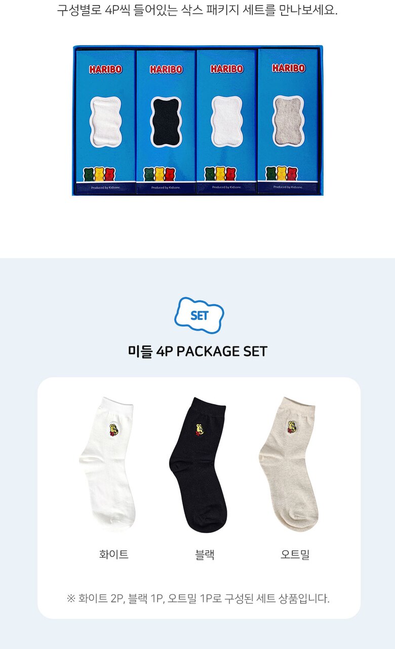 하리보 골드베어 심플 중목양말 4PACK 선물세트