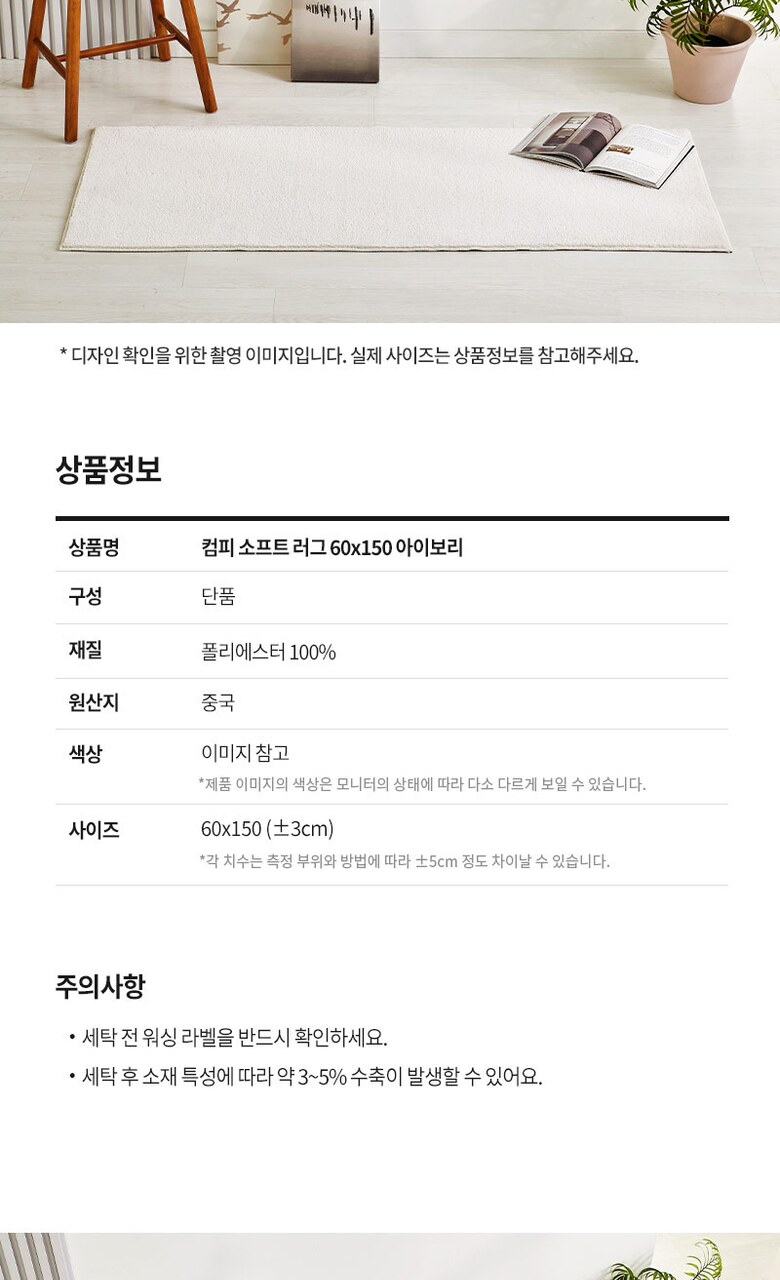 모던하우스 컴피 소프트 러그 60x150 아이보리 CB3225001