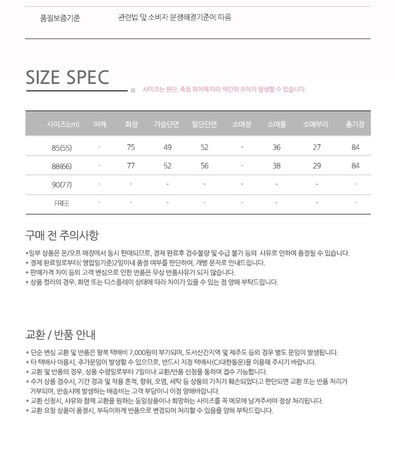 | 6. 세탁방법 및 취급시 주의사항 | 상세페이지참고 |