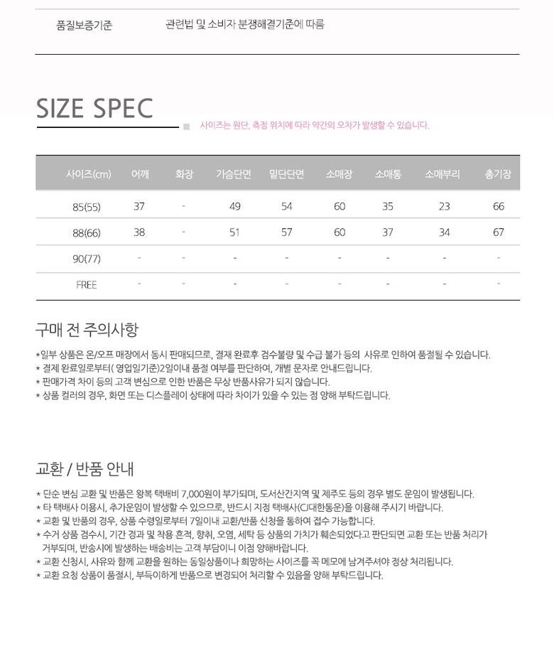 6. 세탁방법 및 취급시 주의사항 | 상세페이지참고 |