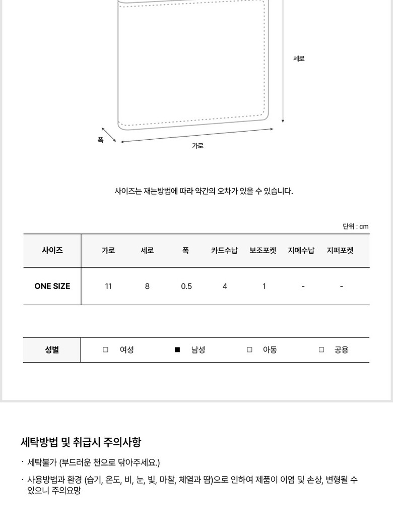 3. 치수 | 가로 11cm X 세로 8cm X 폭 0.5cm |