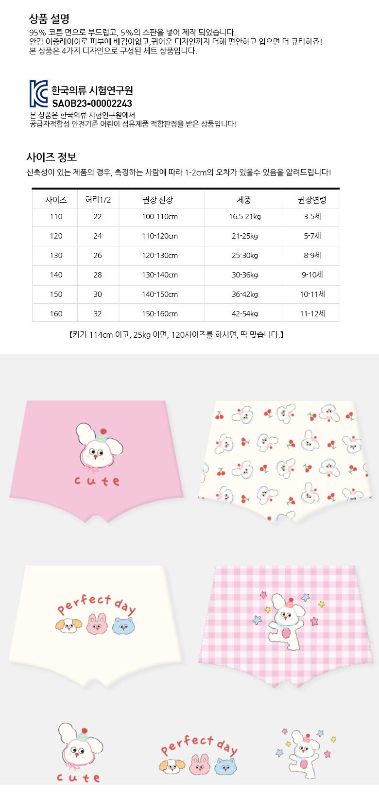 퍼펙트데이 여아 사각팬티 4매+더스트백(N174)