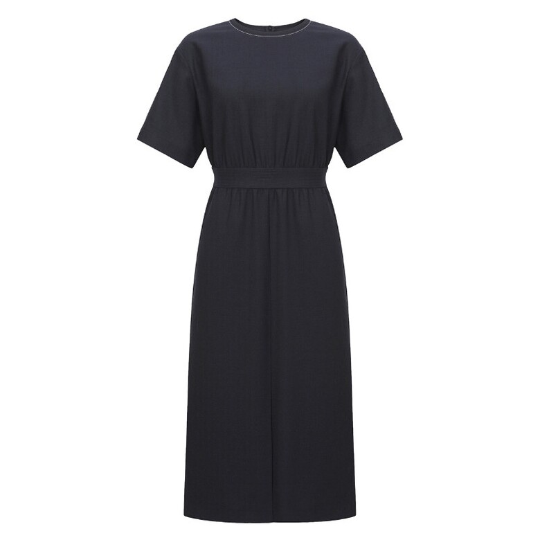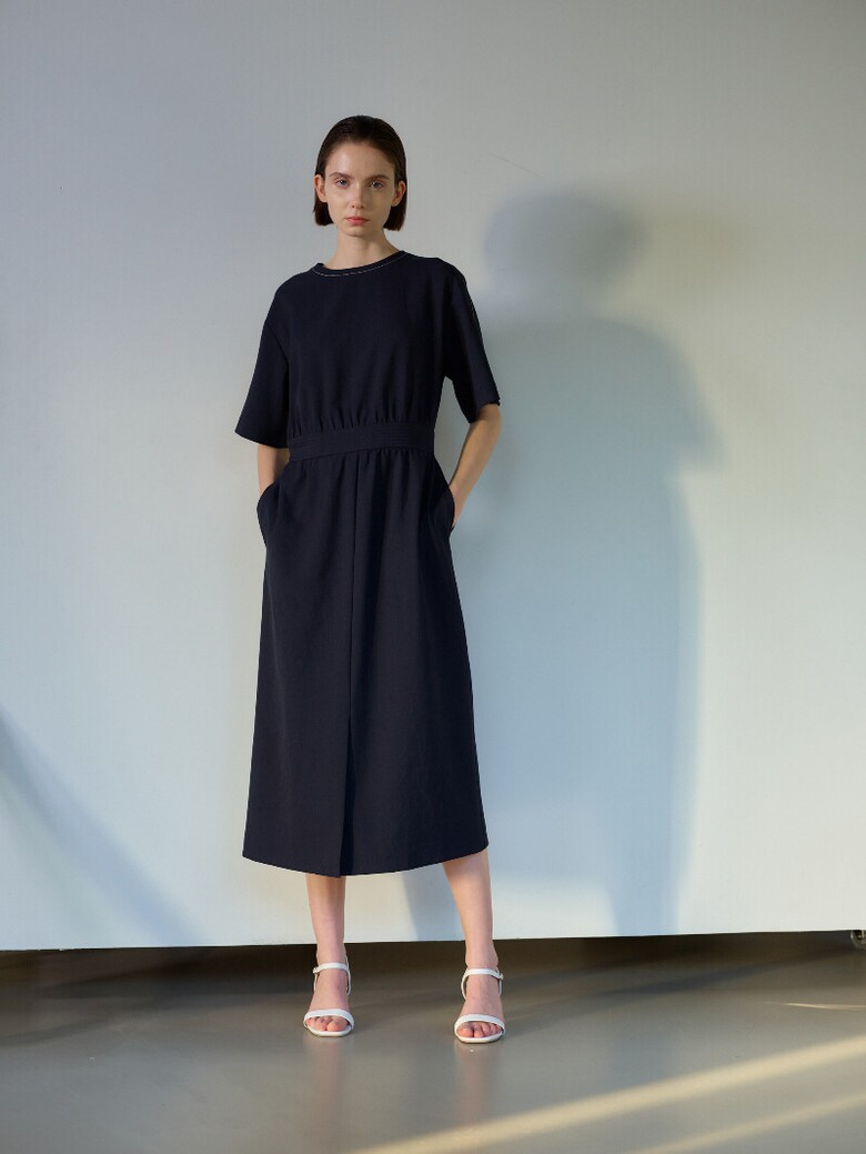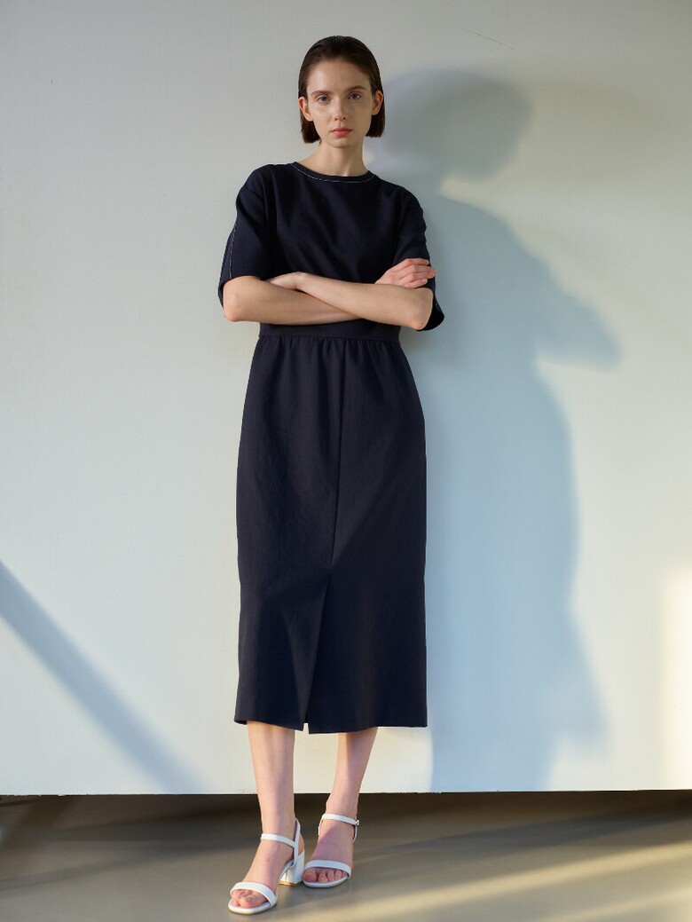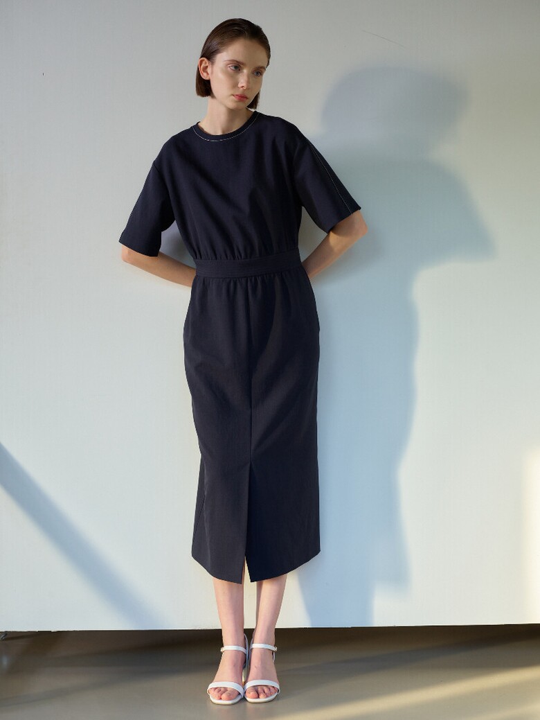 라운드넥 뒷밴딩 슬릿 롱 원피스