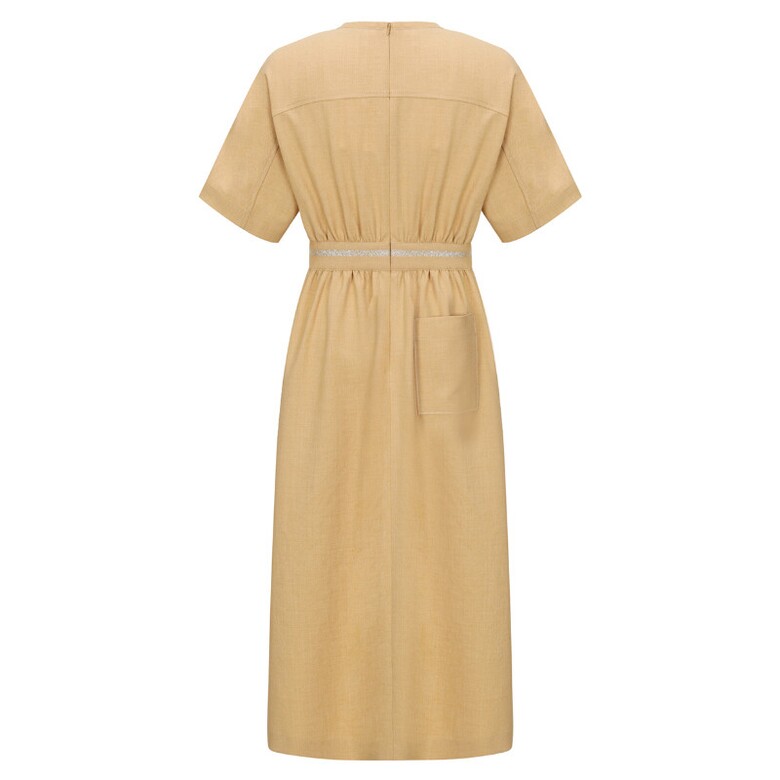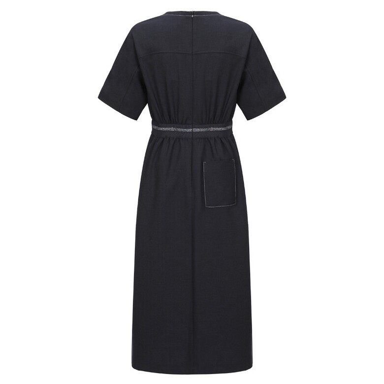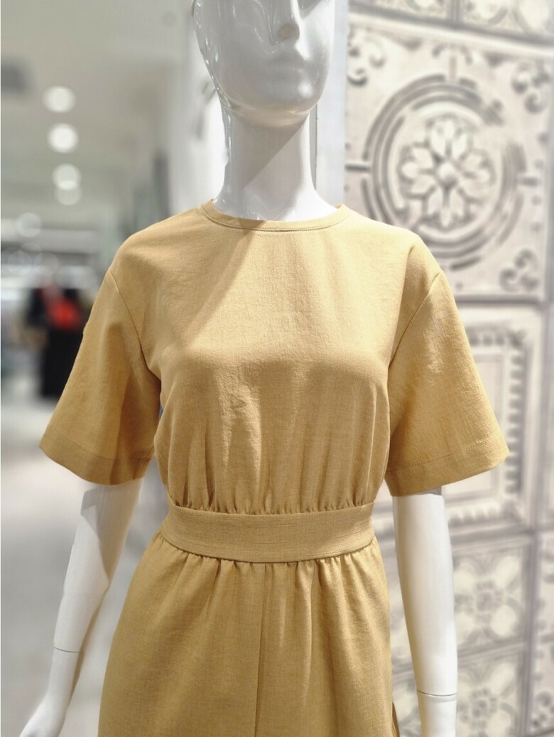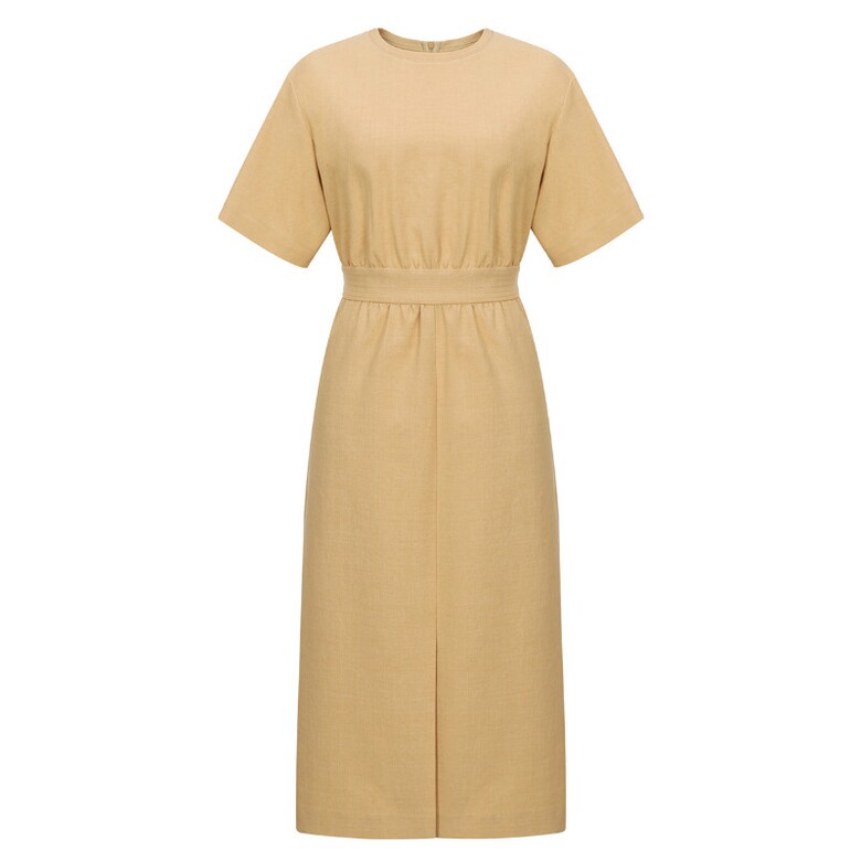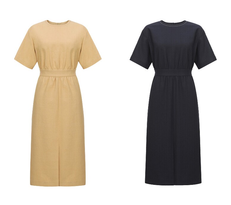 [발렌시아]라운드넥 뒷밴딩 슬릿 롱 원피스 244MO02