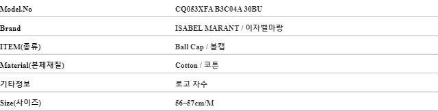 이자벨마랑 CQ053XFA B3C04A 30BU TOMAS 토마스 로고 자수 볼캡 모자