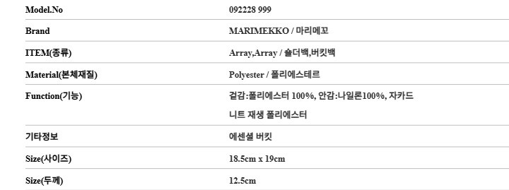 마리메꼬 092228 999 우니꼬 에센셜 버킷 숄더백