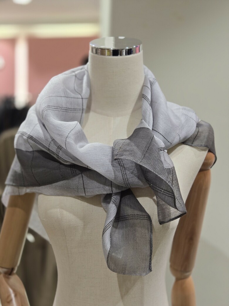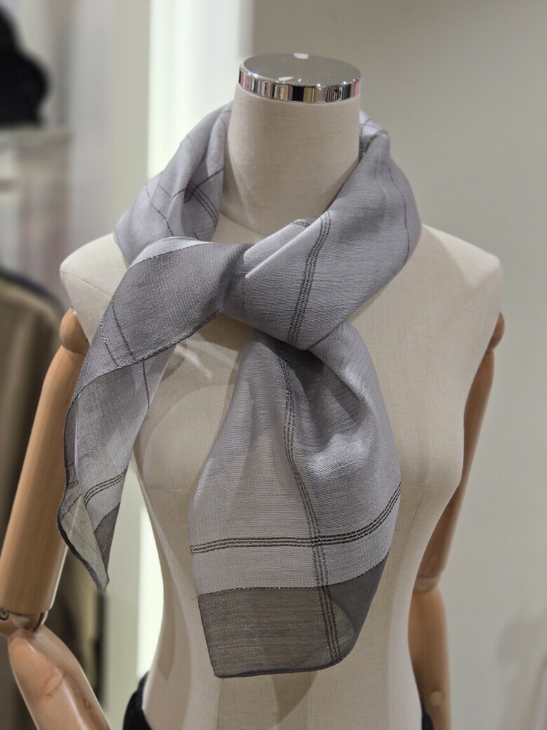 사각으로 편하게 연출할수있는 가볍운 스카프입니다.