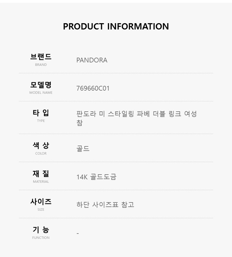 | 1. 소재 / 순도 / 밴드재질 | 골드 / 쥬얼리 - 14K 골드도금 |