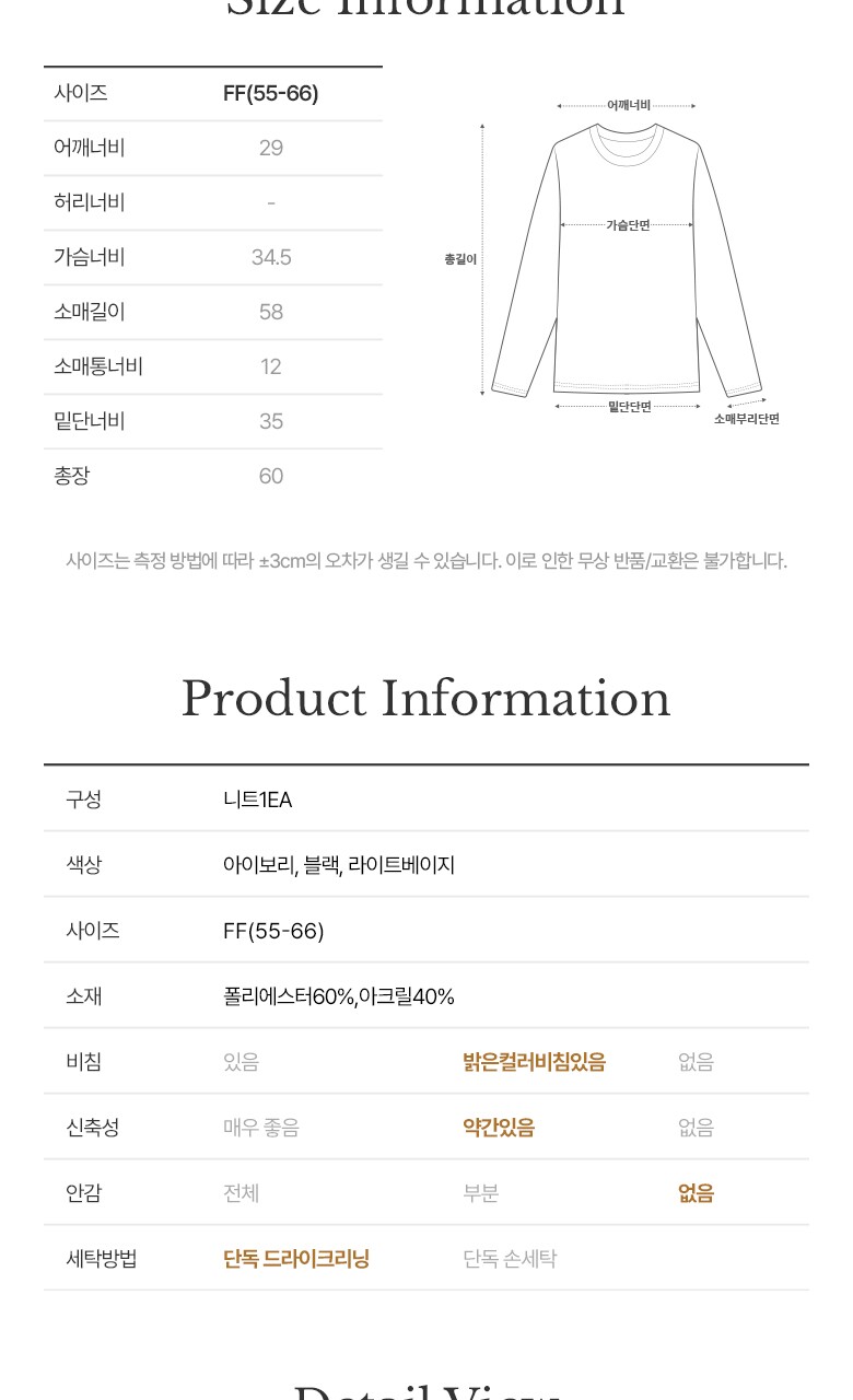 2. 색상 | 아이보리,블랙,라이트베이지 |