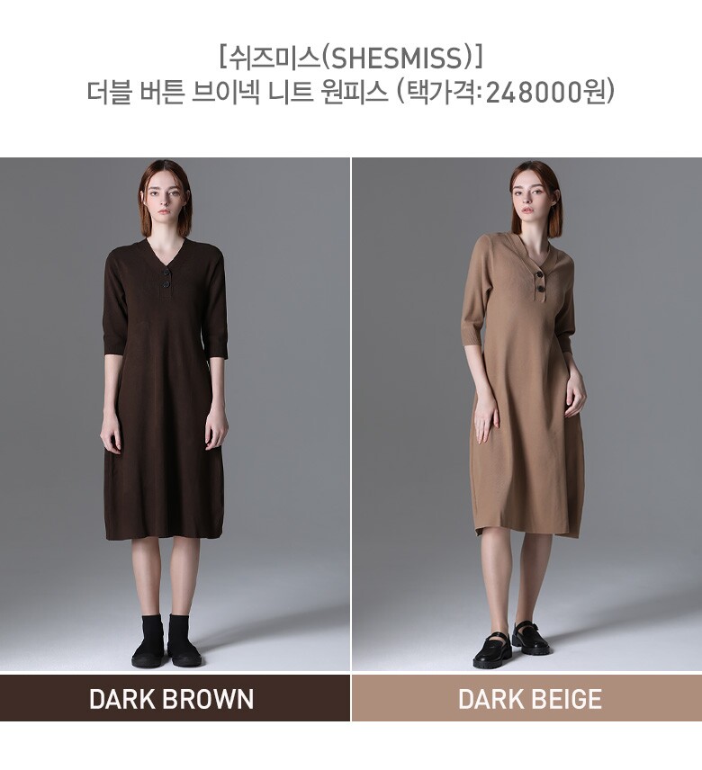[쉬즈미스(SHESMISS)] 더블 버튼 브이넥 니트 원피스 (택가격:248000원)