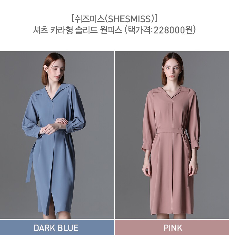 [쉬즈미스(SHESMISS)] 셔츠 카라형 솔리드 원피스 (택가격:228000원)