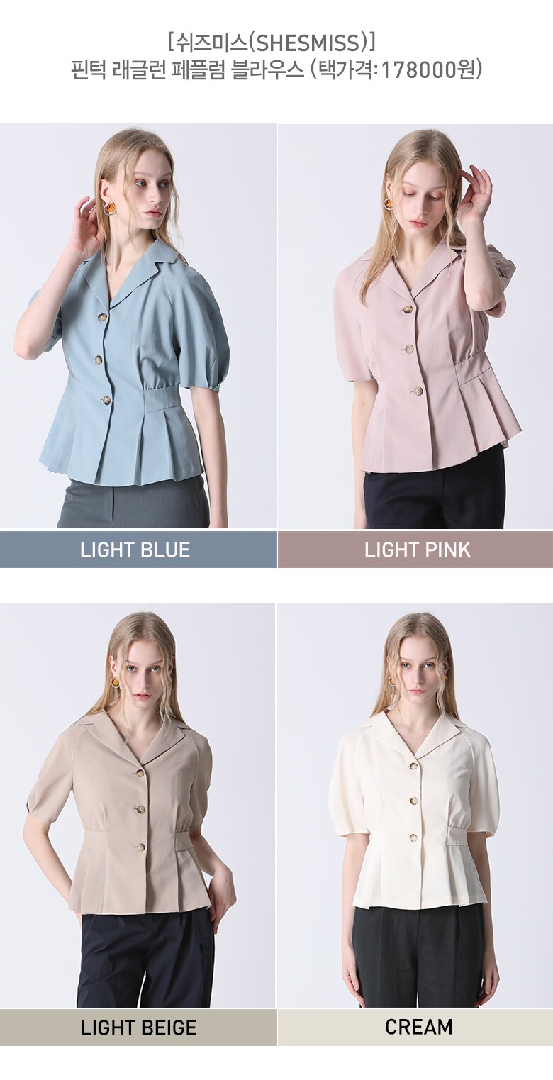 [쉬즈미스(SHESMISS)] 핀턱 래글런 페플럼 블라우스 (택가격:178000원)