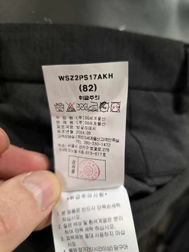 | 6. 세탁방법 및 취급시 주의사항 | 단독 물세탁 하십시오 |