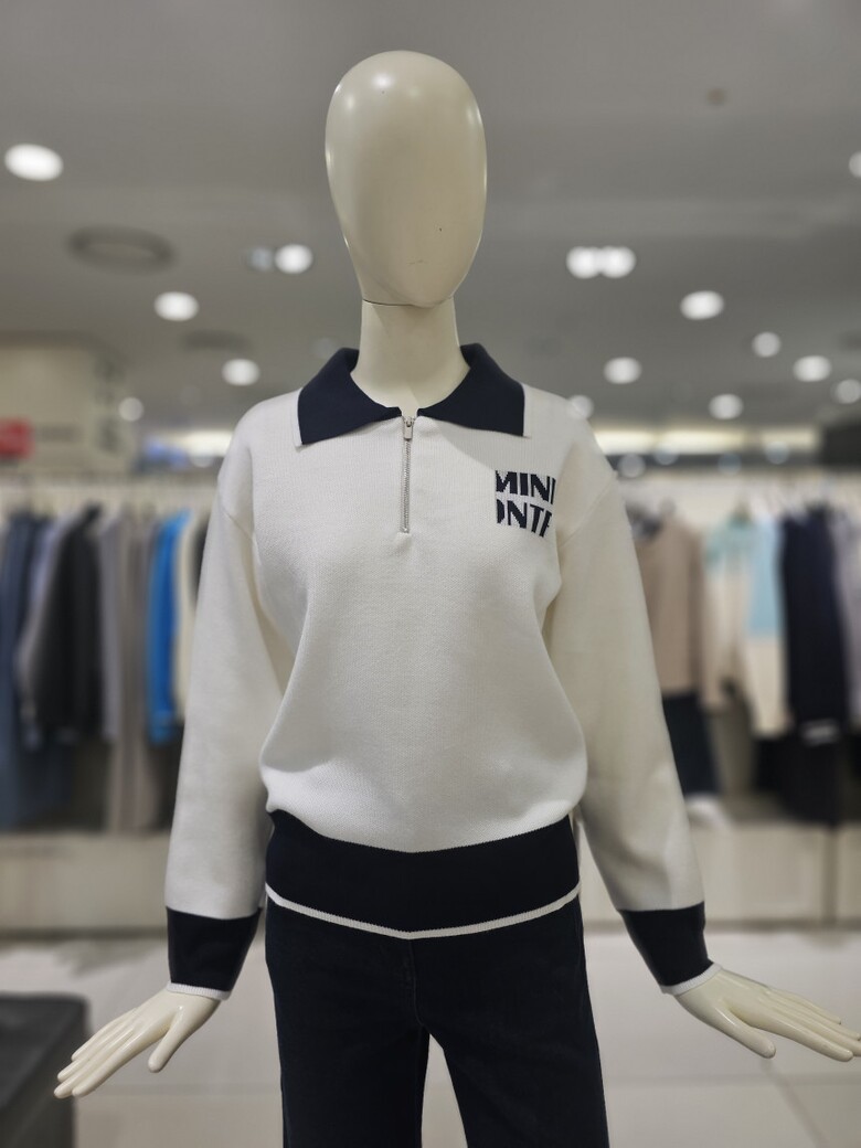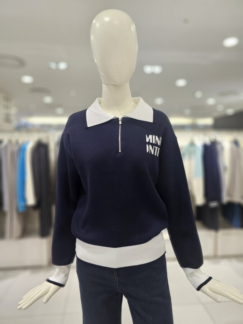 더 틸버리 배색 집업칼라 풀오버니트TR2M1PO63W