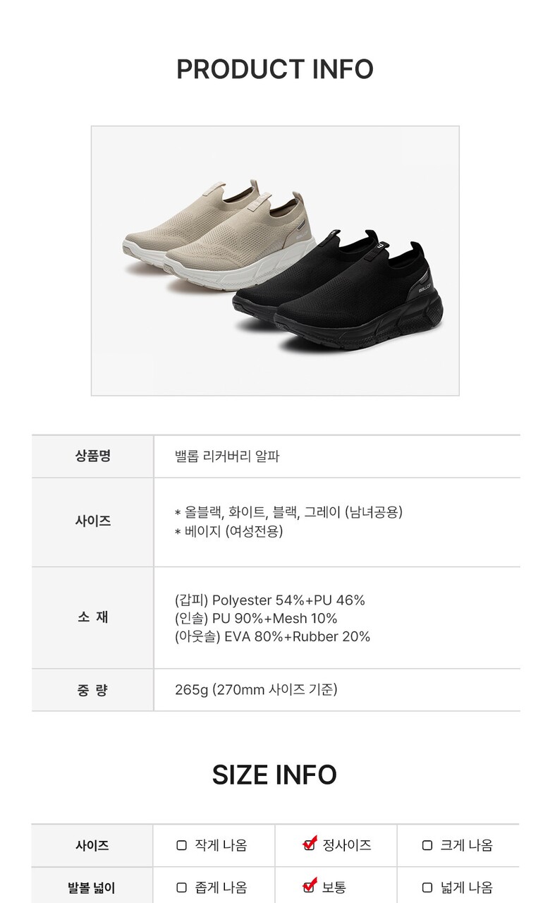 밸롭 쿠션감좋은 리커버리 알파 니트워킹화 올블랙 BA5SWKU001AB