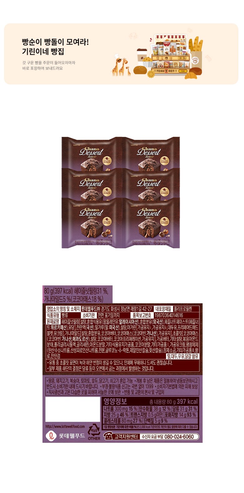 [롯데] 기린이네 가나 디저트 하우스 헤이즐넛 케이크 6봉