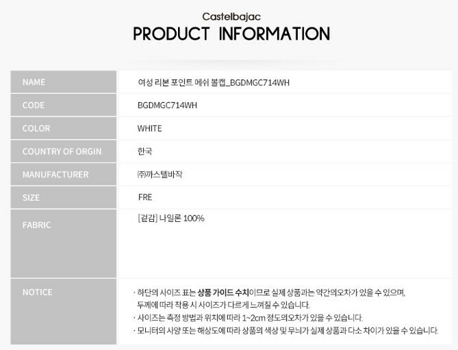 | 1. 품명 및 모델명 | 여성 리본 포인트 메쉬 볼 캡 |